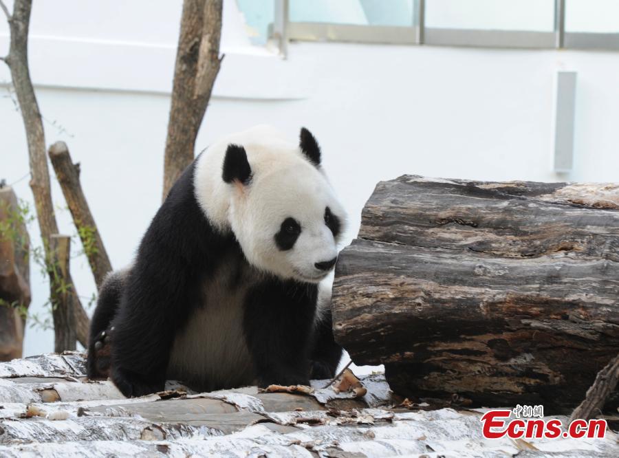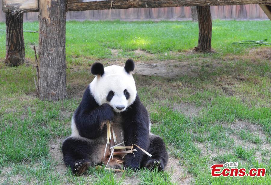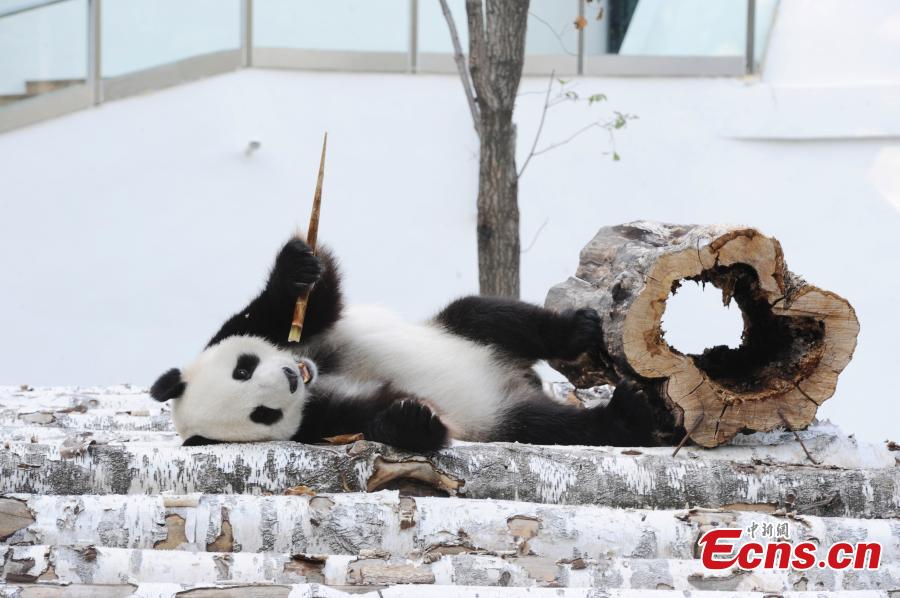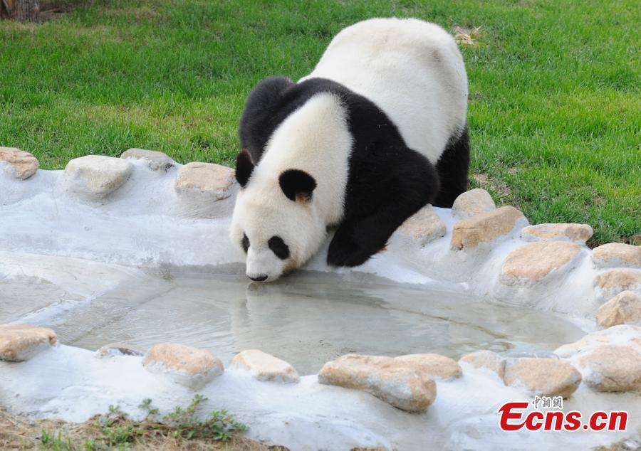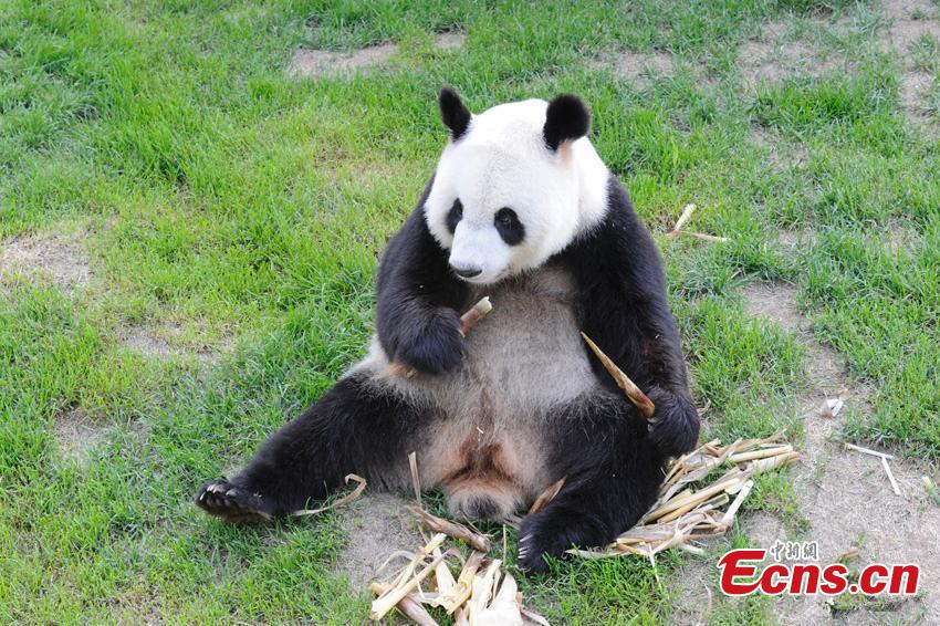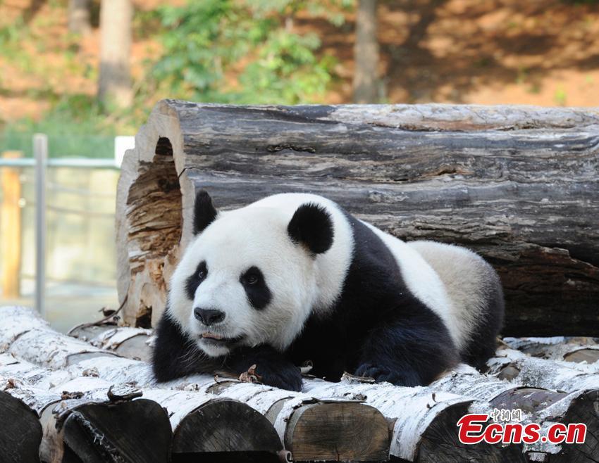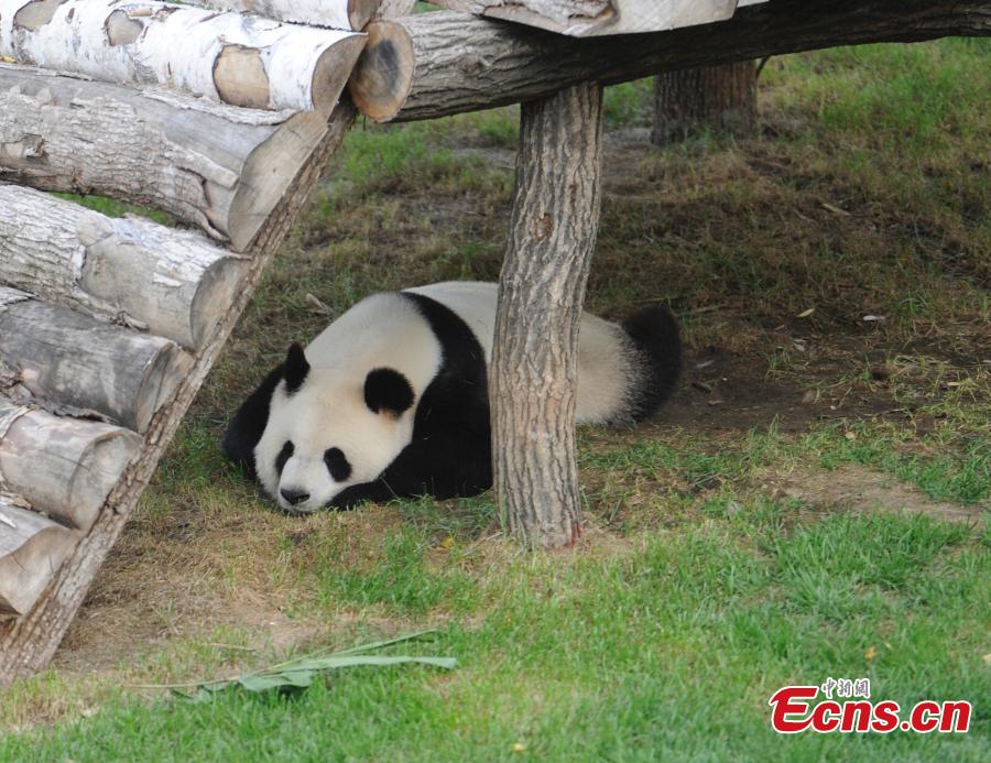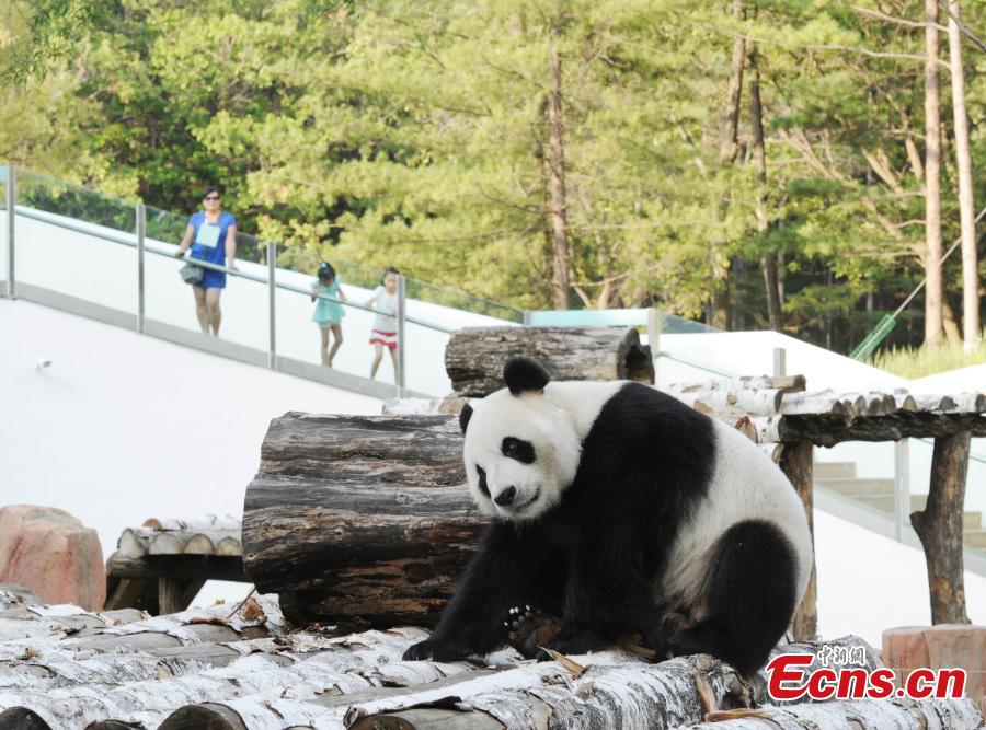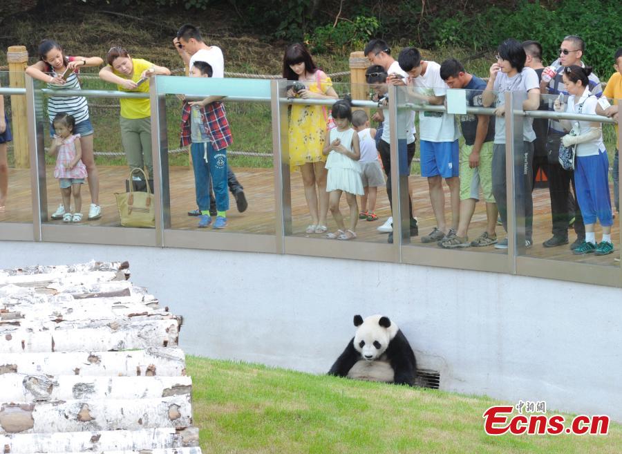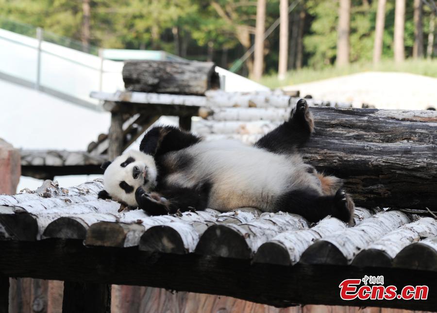 Giant panda Meng Meng plays in the panda house at the Jilin Siberian Tiger Park in Changchun city, capital of Northeast China’s Jilin province, Aug 16, 2015. The two pandas, one male aged 8, the other female aged 7, are on loan from the Dujiangyan Panda Base in Sichuan province. The Jilin park, which is also a wildlife research center, signed a three-year contract with the China Conservation and Research Center for the Giant Panda to experiment at raising pandas at a higher latitude in China's northeast. The pandas were recently renamed Jia Jia and Meng Meng. (Photo: China News Service/Zhang Yao)
