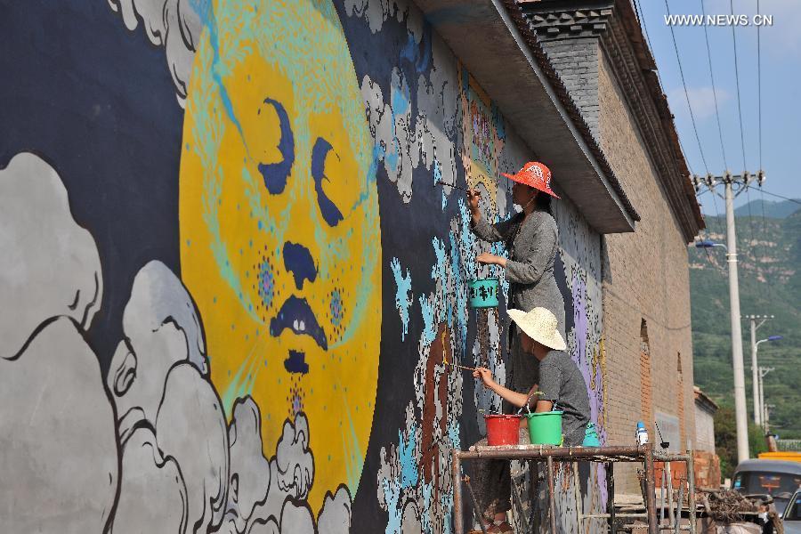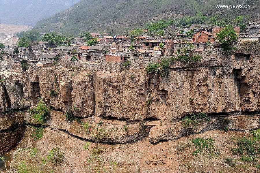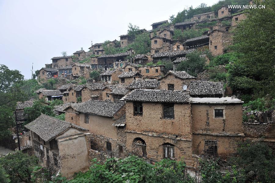 Houses built with red bricks stand out among stone complexes in the Taihang Mountains in Hongni Village of Pingshun County, north China's Shanxi Province, Aug. 11, 2015. According to the statistics of Ministry of Housing and Urban-Rural Development, the number of unincorporated villages in China decreased from 4.2 million in 1984 to 2.67 million in 2012, at a rate of 55, 000 per year. Protection of traditional villages is needed and ongoing through tapping cultural resources and developing tourism. (Photo: Xinhua/Zhan Yan)