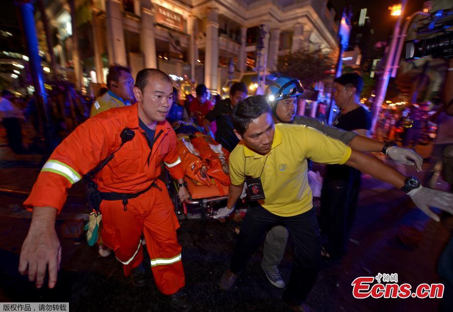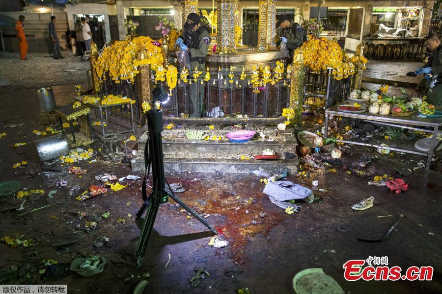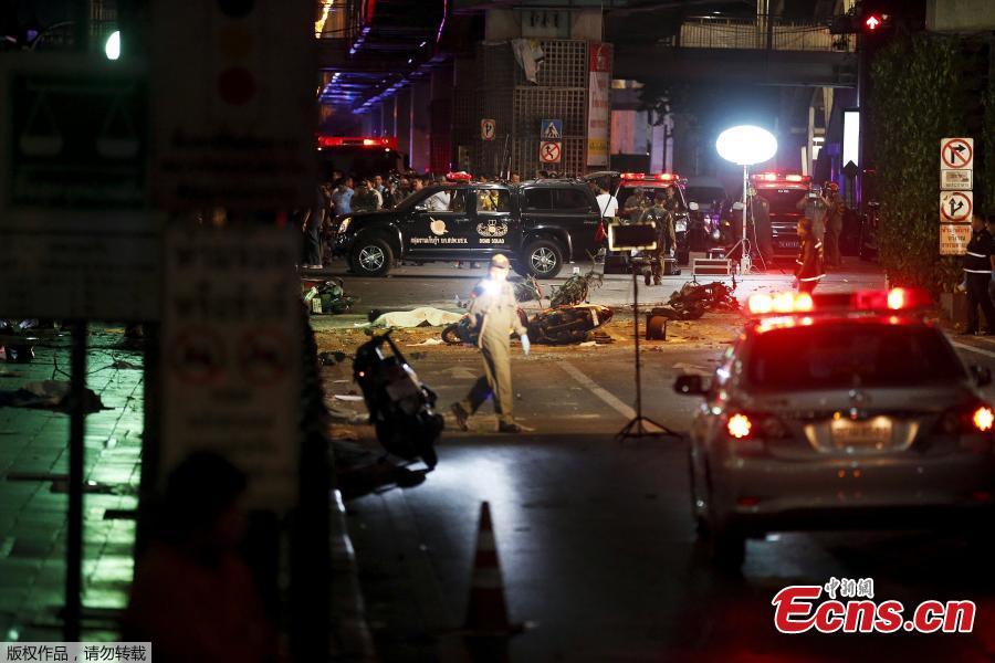 Motorcycles lie on the street at the scene of a bomb attack near Erawan Shrine, central Bangkok, Thailand, Aug 17, 2015. A bomb exploded Monday within a central Bangkok shrine that is among the city's most popular tourist spots, killing at least 22 people and injuring more than 100 across a hectic intersection surrounded by five-star hotels and upscale shopping malls. (Photo provided to China News Service)