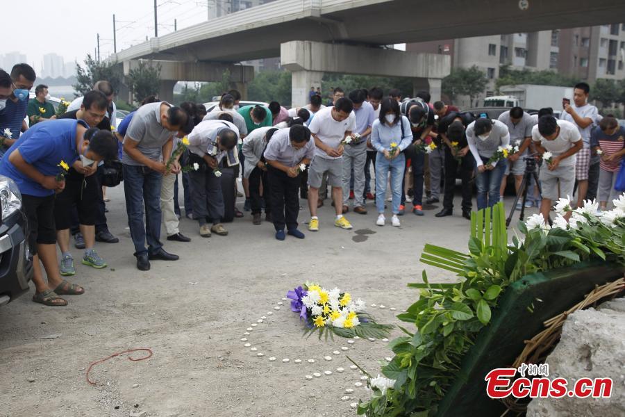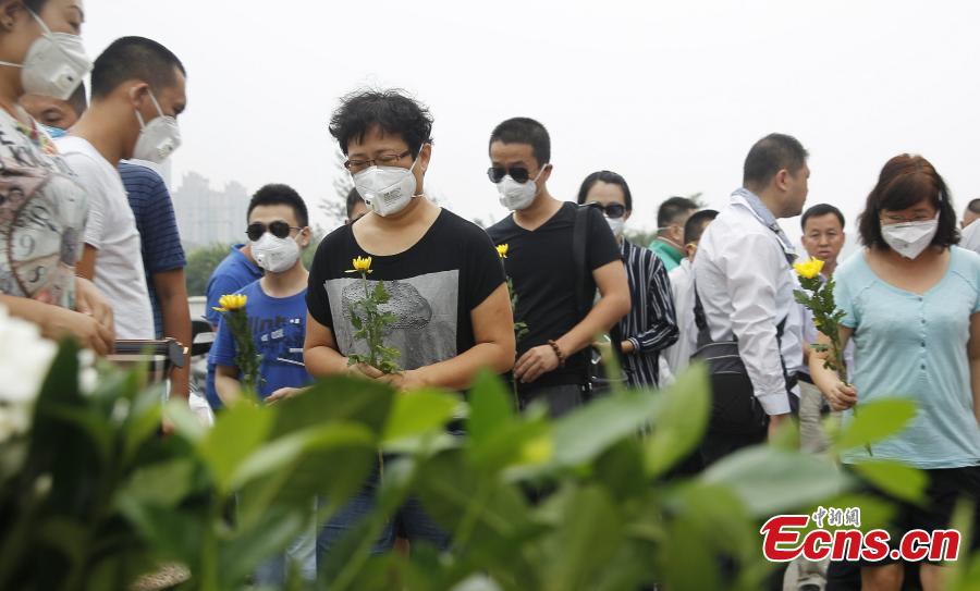 Rescue workers hold three-minute silence on the seventh day since the blasts rocked a warehouse storing hazardous chemicals in Tianjin Binhai New Area, Aug 18. (Photo/CFP)