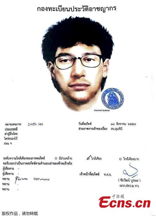 Thai police released this sketch of the bombing suspect, Aug. 19, 2015. Thai authorities have issued an arrest warrant for a foreign man wanted in the bombing that killed at least 22 people Monday at a Bangkok shrine.(Photo/Agencies)