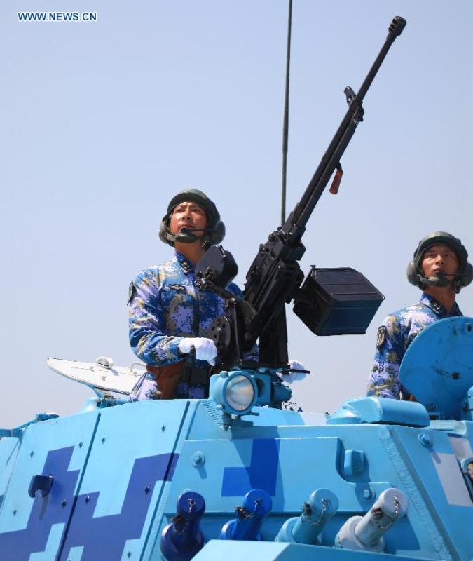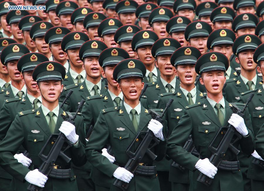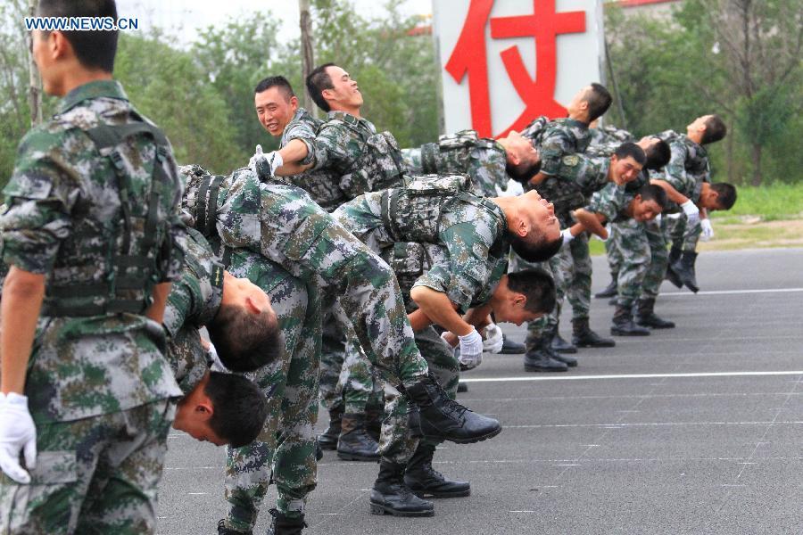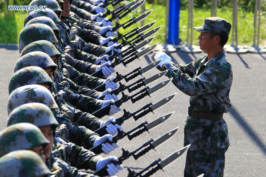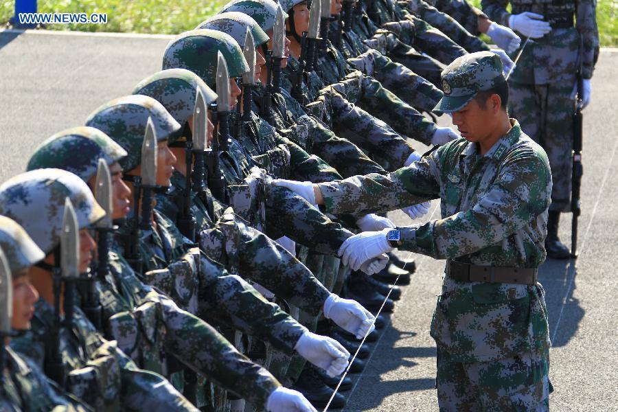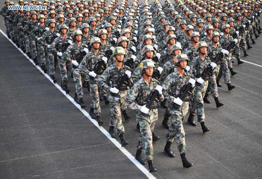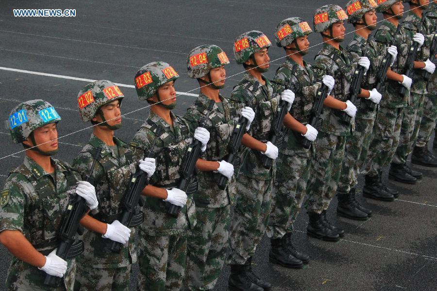 Photo taken on July 23, 2015 shows soldiers participating in training for the Sept. 3 military parade at the parade training base. Chinese soldiers and military officers have been sweating over the upcoming high-profile parade in commemoration of the 70th anniversary of the end of World War II for the last three months as they prepare for the show on Sept. 3.(Photo: Xinhua/Tian Feng)