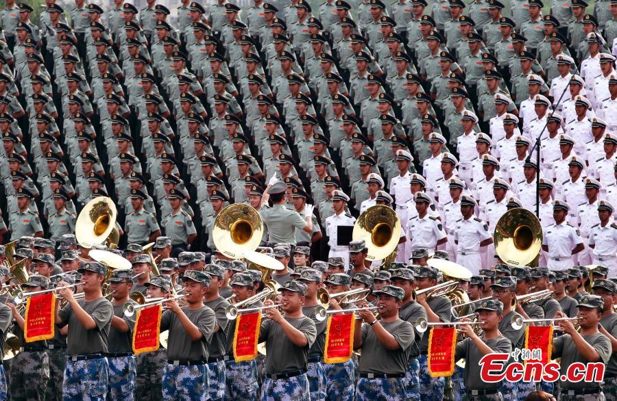 Aug. 14, Beijing, PLA chorus soldiers are doing practices. It will be their first time to take part in China's military parade on September 3rd. (CNS photo/SONG Jihe)