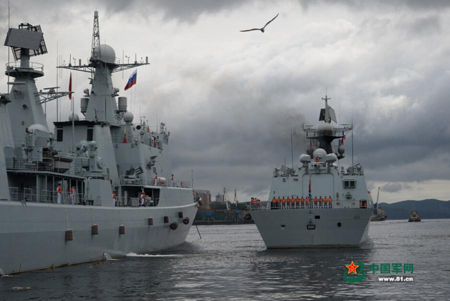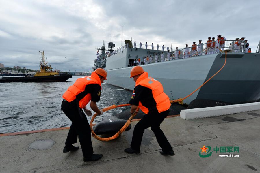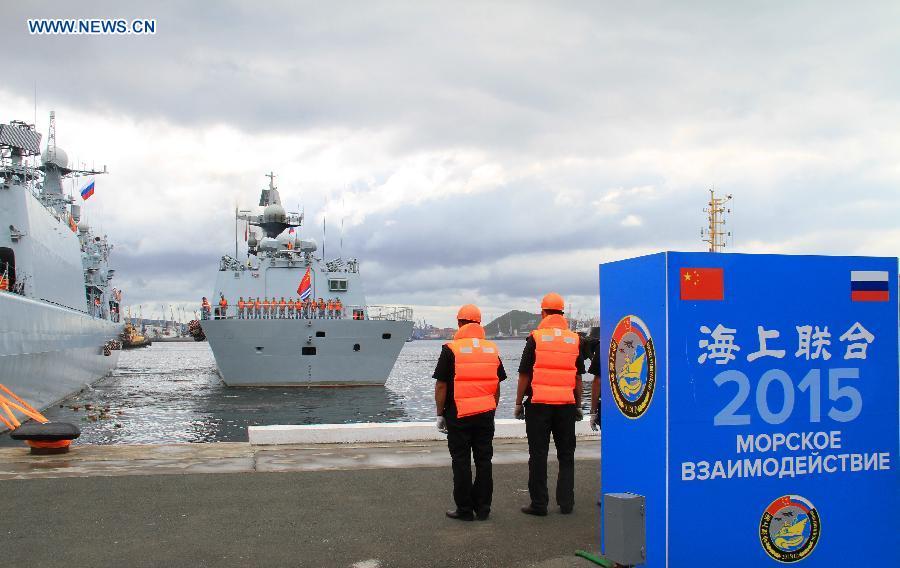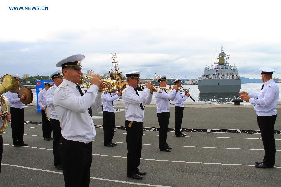Chinese navy frigates Hengyang leaves the harbor during the Joint Sea-2015 (II) drill on Aug. 23, 2015 in Vladivostok, Russia. The Joint Sea-2015 (II) drill takes place from Aug. 20 to 28 in the Peter the Great Gulf, waters off the Clerk Cape, and the Sea of Japan, this is the second China-Russia naval exercise this year.(Xinhua/Sun Yanxin)