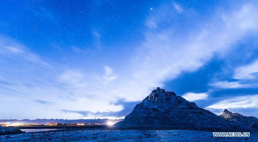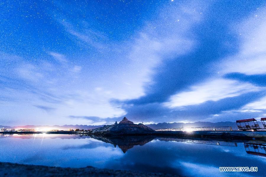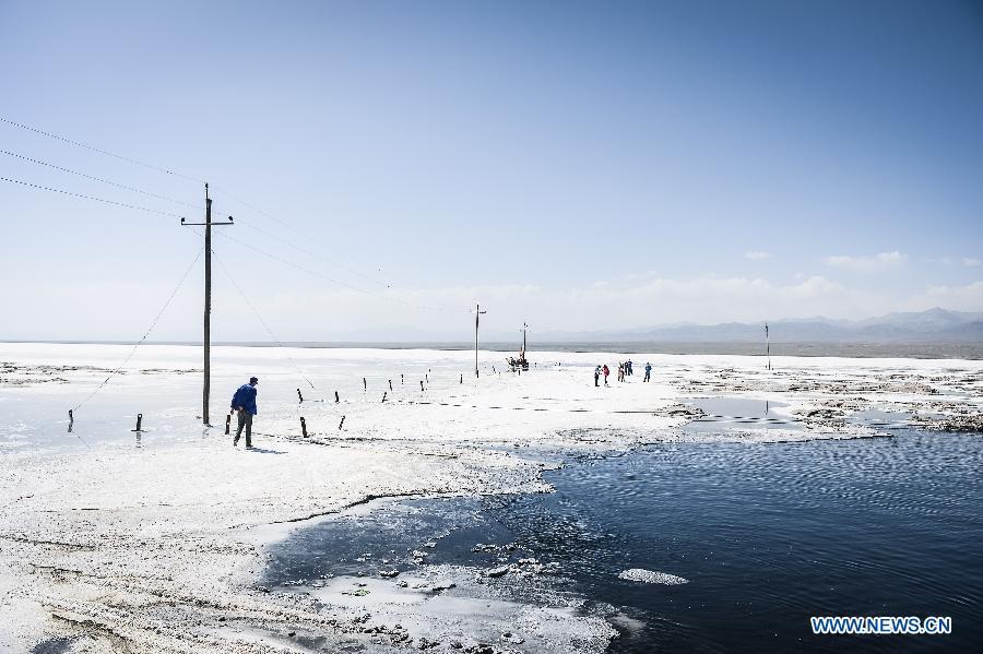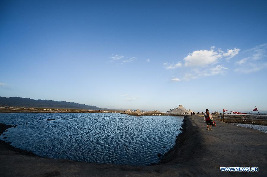 Tourists enjoy themselves on the Chaka salt lake in Wulan County, northwest China's Qinghai Province, Aug. 21, 2015. The Chaka salt lake is one of the most famous natural tourism destinations in Qinghai for Chinese tourists. The lake, with an altitude of 3,100 meters, is ten times as large as the West Lake in east China's Hangzhou City. The history of salt mining here can date back to over 3,000 years ago. (Photo: Xinhua/Wu Gang)