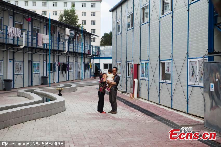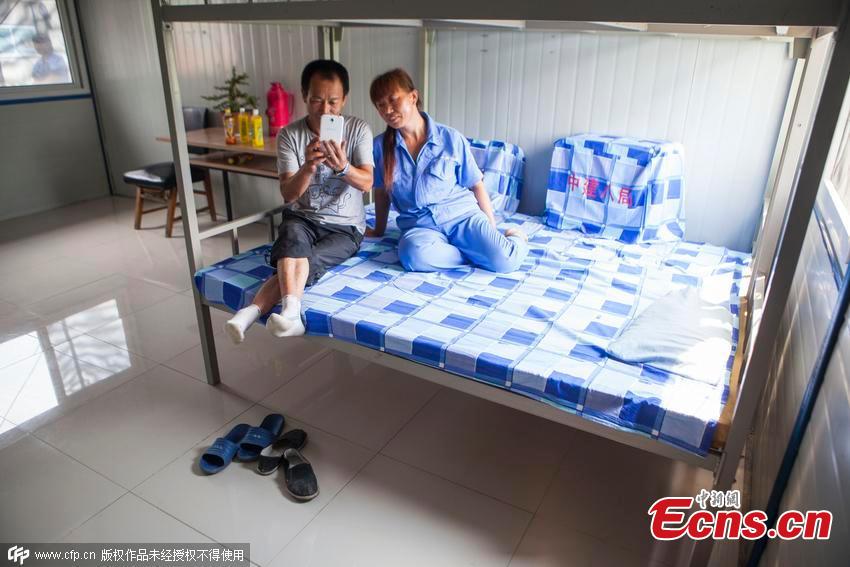 Carpenter Yao and his wife stay in a dormitory for migrant workers and their visiting wives at a construction site in Changchun, Northeast China’s Jilin province. Yao, 44, has been working in Changchun since April. Couples working at the construction site also have been offered separate rooms. (Photo/CFP)