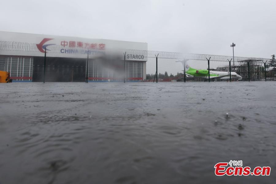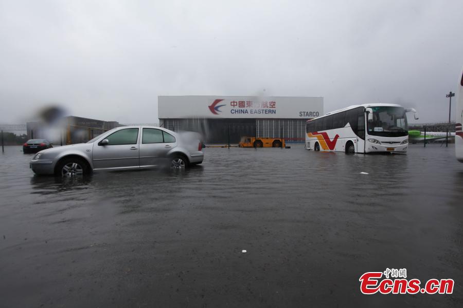 The landing areas at Shanghai Honqiao International Airport flood after heavy rain in Shanghai, Aug 24, 2015. Shanghai has issued a rainstorm alert, although the waterlogged airport is not affecting landing or take-off. (Photo: China News Service/Zhang Hengwei)
