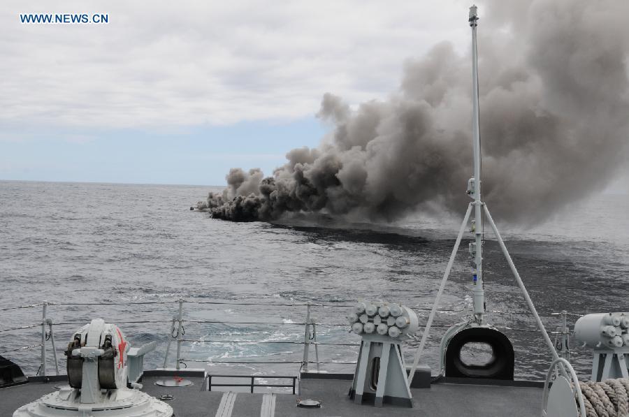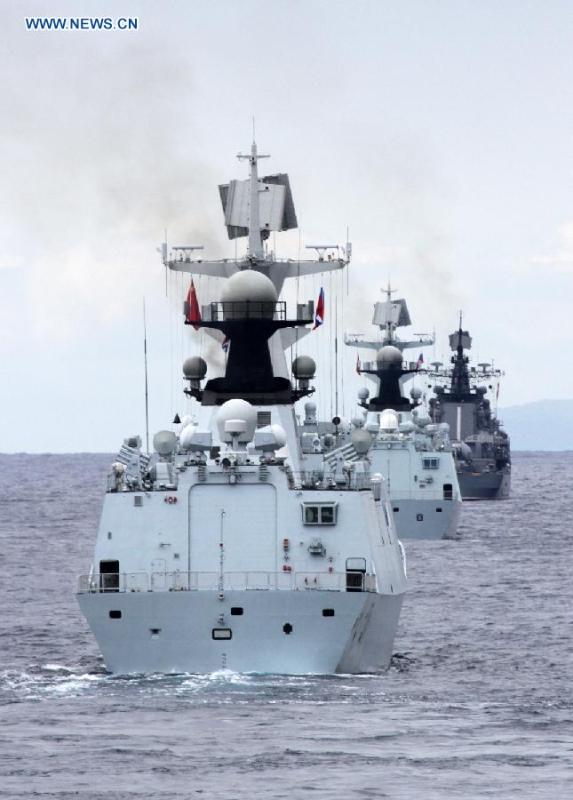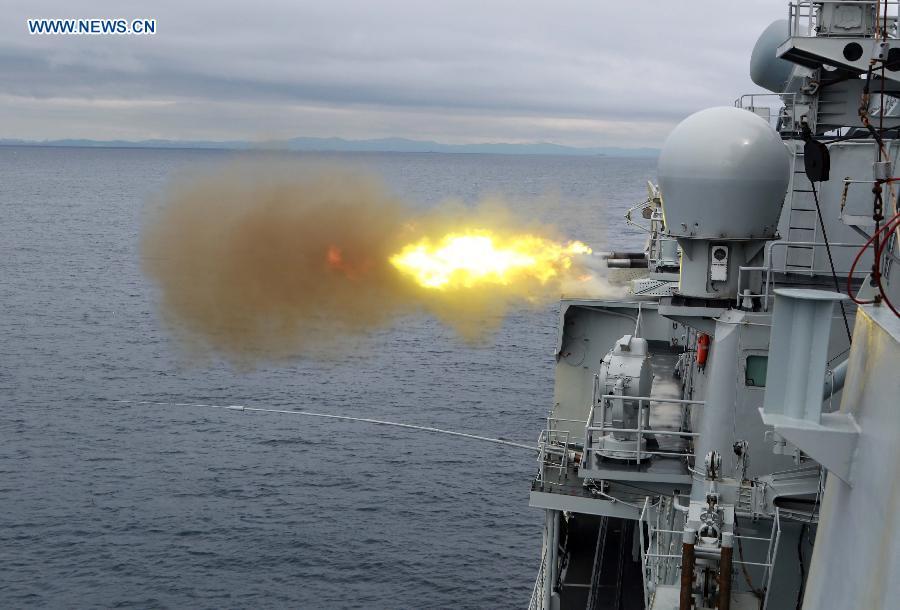 A JH-7 fighter jet of the Chinese Air Force takes part in an air exercise of the ongoing China-Russia joint naval drills, Aug. 24, 2015. Four fighter jets, two J-10 and two JH-7, dispatched by the Chinese Air Force took off from an airport in northeast China and returned after completing the drill. A KJ-200 early warning plane also took part in the exercise to give directions to the other four fighters. The drills, code named Joint Sea-2015 (II), are being held from Aug. 20 to 28 in the Peter the Great Gulf, waters off the Clerk Cape, and the Sea of Japan. (Photo: Xinhua/Liu Daquan)