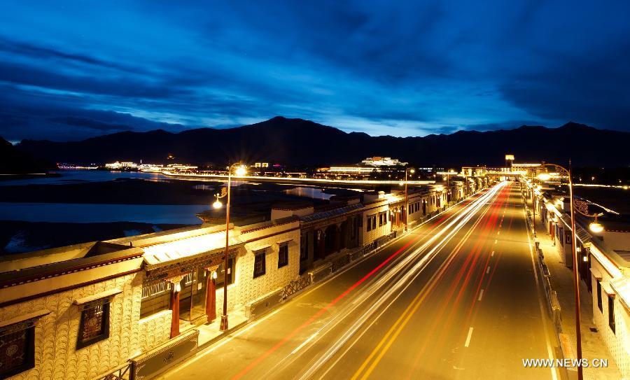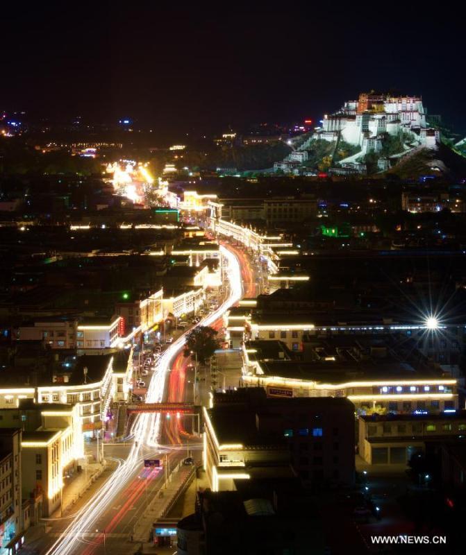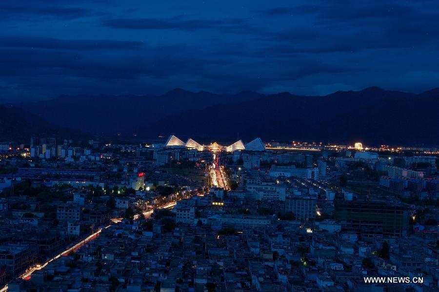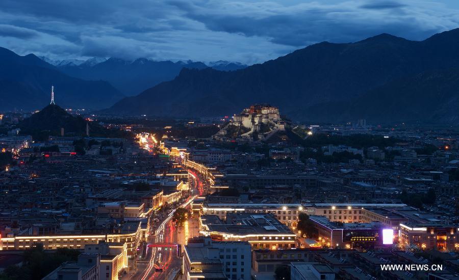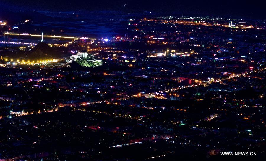 Photo taken on Aug. 13, 2015 shows the night view of Lhasa, capital of southwest China's Tibet Autonomous Region. Lhasa, one of the highest cities in the world, has a history of more than 1,300 years. (Photo: Xinhua/Purbu Zhaxi)