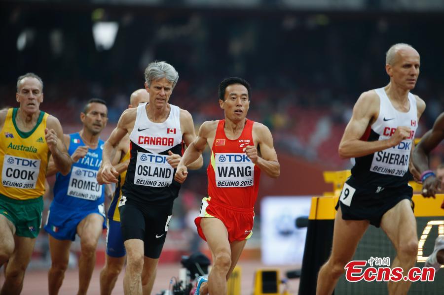 Old players compete in men's 800m race in the 2015 IAAF world championships in Beijing, Aug. 29, 2015. (CNS photo/Sheng Jiapeng)