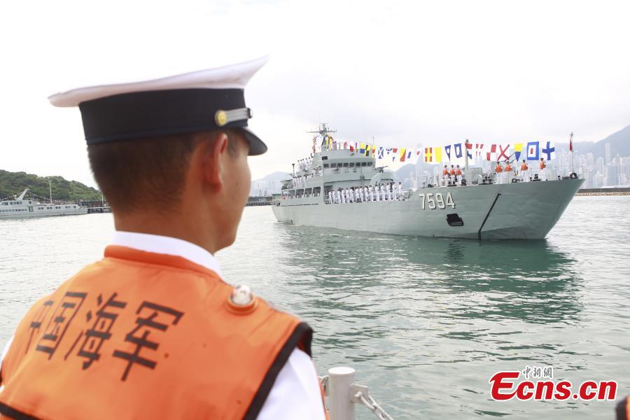 Some organic units of the Army, Navy and Air Force of the Chinese People’s Liberation Army (PLA) garrisoning in Hong Kong completed the 17th regular rotation on August 31, 2015. After the rotation, the number of personnel and equipment of the PLA Hong Kong Garrison will remain unchanged. This rotation is carried out according to the provision that “the PLA Hong Kong Garrison shall practice a system of rotation of its members” in the Law of the People's Republic of China on Garrisoning the Hong Kong Special Administrative Region and the order of the Central Military Commission (CMC) of the People’s Republic of China (PRC). (Photo: China News Service/ Zhong Xin)