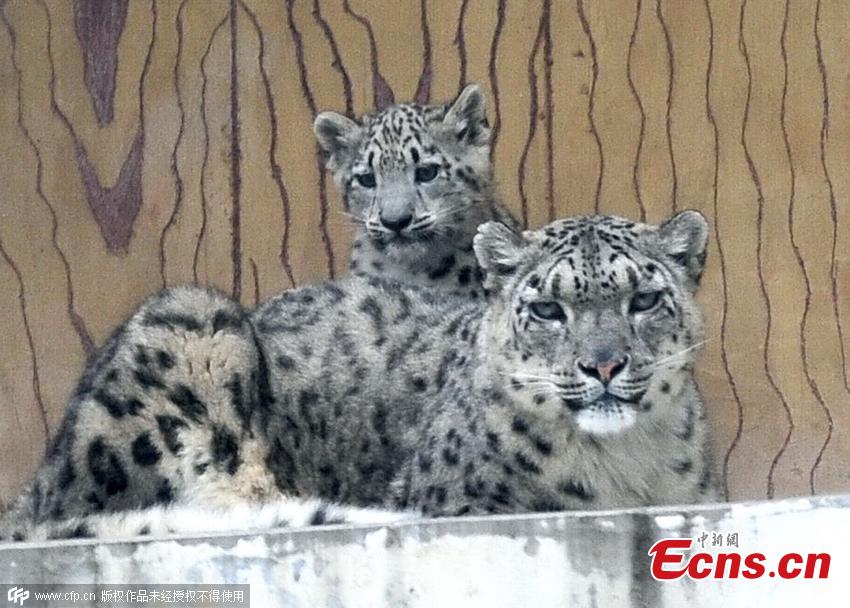 A 100-day-old snow leopard cub meets visitors at a zoo in Jinan, East China’s Shandong province on September 1, 2015. (Photo/CFP)