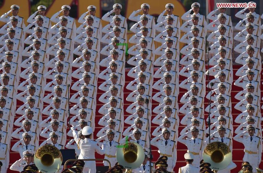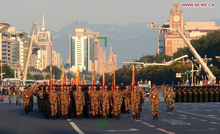 Foreign military officers and soldiers prepare for the commemoration activities to mark the 70th anniversary of the victory of the Chinese People's War of Resistance Against Japanese Aggression and the World Anti-Fascist War, in Beijing, capital of China, Sept. 3, 2015. (Photo: Xinhua/Zhu Xiang)