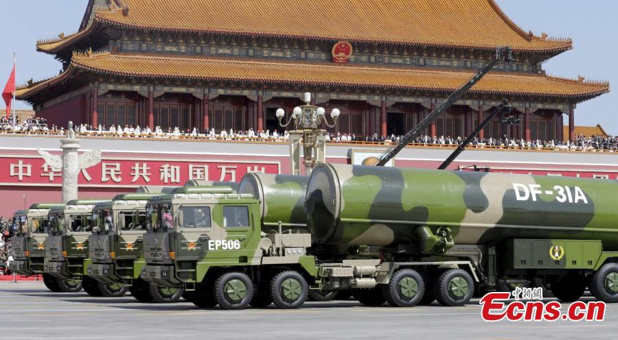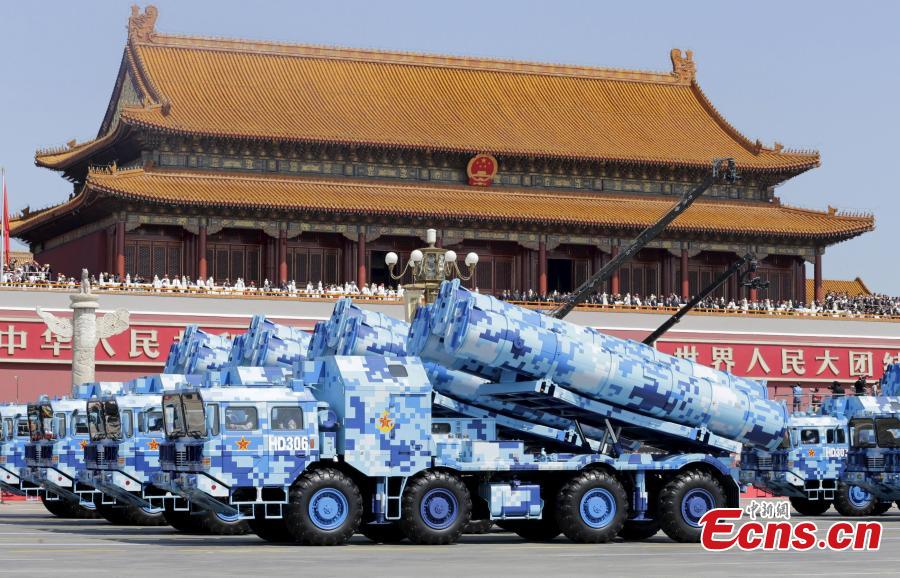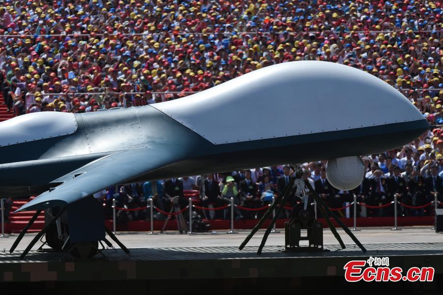 A military vehicle carrying an unmanned aerial vehicle drives past the Tian'anmen Square during the military parade marking the 70th anniversary of the end of World War II, in Beijing, September 3, 2015. (Photo/ECNS)