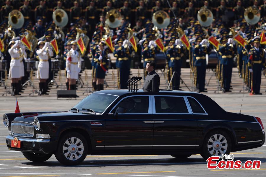 Chinese President Xi Jinping inspects troops during a parade of the commemoration activities to mark the 70th anniversary of the victory of the Chinese People's War of Resistance Against Japanese Aggression and the World Anti-Fascist War, in Beijing, capital of China, Sept. 3, 2015. (CNS photo/Du Yang)