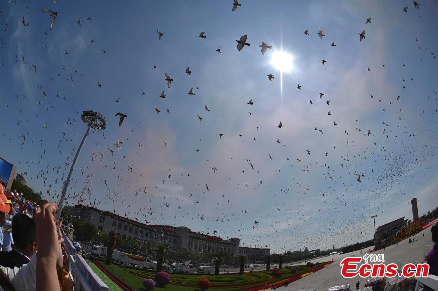 Pigeons are released at the end of the commemoration activities marking the 70th anniversary of the victory of the Chinese People's War of Resistance Against Japanese Aggression and the World Anti-Fascist War, in Beijing, capital of China, Sept. 3, 2015. (CNS photo/Jin Shuo)