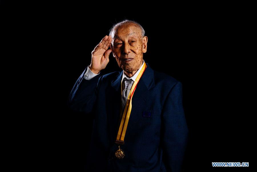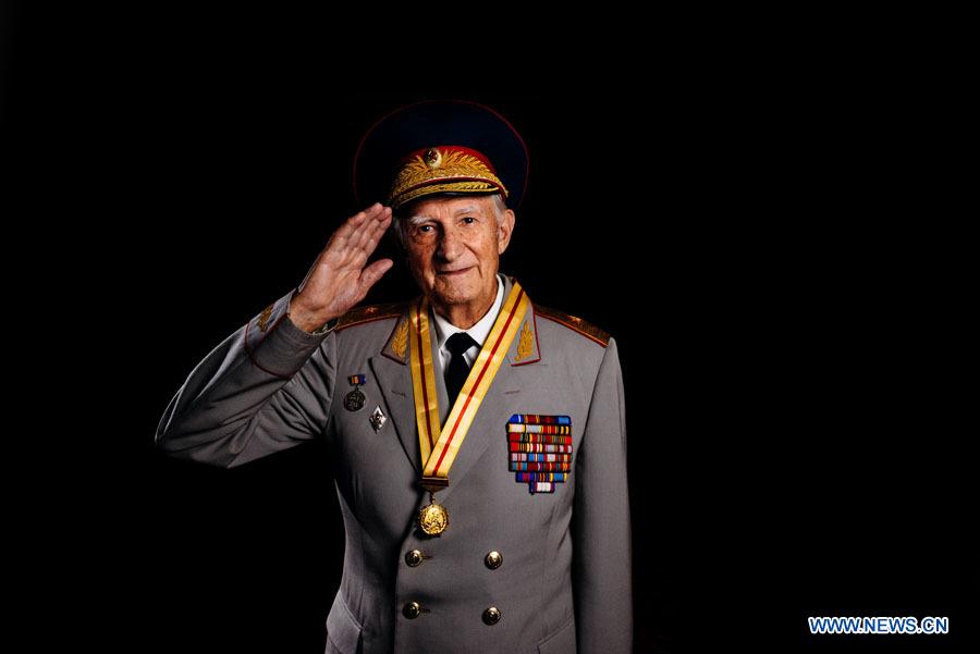 Photo taken on Sept.2, 2015 shows the image of Makhmut A. Gareev in Beijing, capital of China. Currently president of the Russian Academy of Military Sciences, Makhmut A. Gareev took part in the battle to liberate Mudanjiang in northeast China's Heilongjiang province in 1945.Chinese President Xi Jinping on Wednesday granted medals to 10 international anti-fascist fighters who fought for China in World War II. (Xinhua/Liu Jinhai)