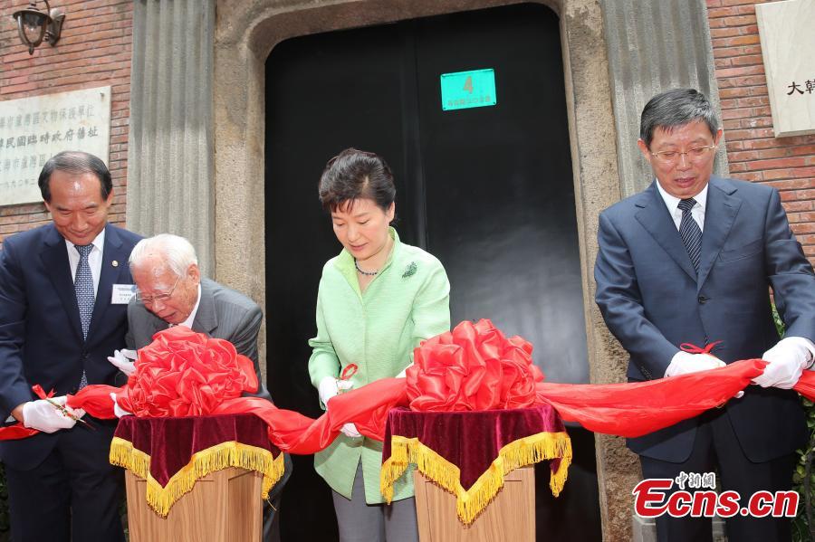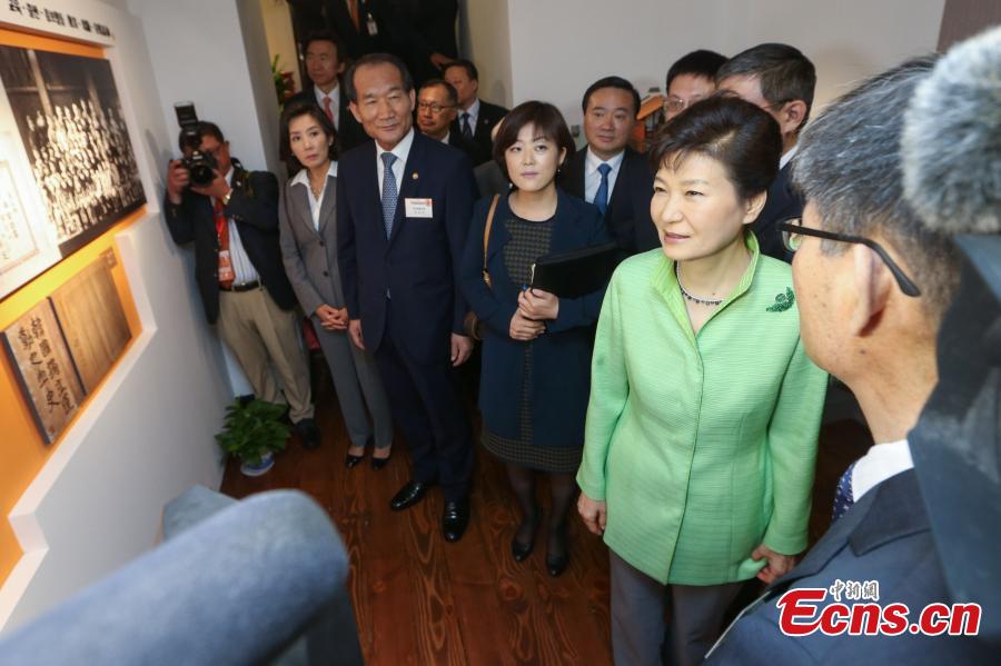 Park visits the site of Korea's provisional government in Shanghai, on Sept 4. (Photo: China News Service/Shen Hai)