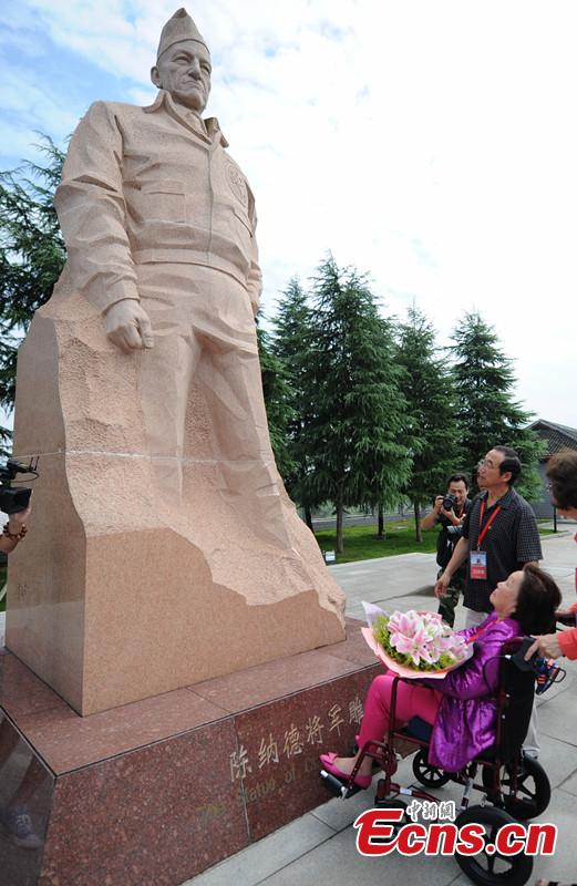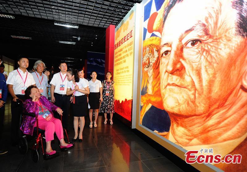 Anna Chan Chennault, wife of American pilot Claire Chennault, who volunteered to fight against the Japanese air force during the World War II, visits the Flying Tigers Memorial Mesuem in Zhijiang, central China's Hunan Province, Sept. 5, 2015. (CNS photo/Yang Huafeng)