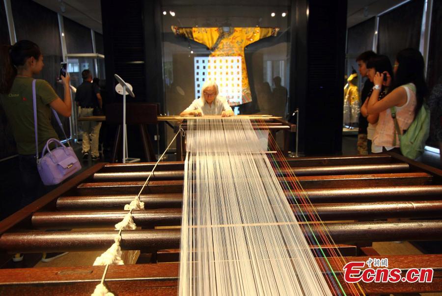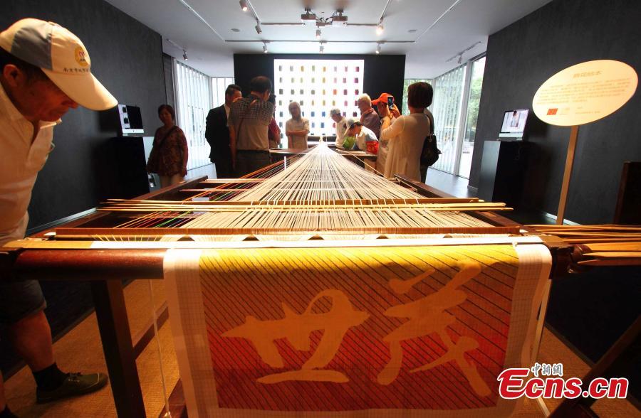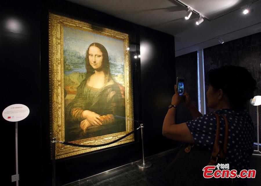 A visitor takes a photo for a new version of the Mona Lisa made of Yunjin silk brocade during an exhibition in Nanjing, Jiangsu province on September 5, 2015. Known as “Yunjin”, the special silk brocade is a craft dating back more than 1,500 years. “Yun” means clouds, and “jin” means brocade. The name implies the image of a delicate and flossy piece of brocade that feels like soft clouds. The new version of Leonardo Da Vinci’s master piece was displayed at “Nanjing Week” during the Milan Expo. (Photo: China News Service/Li Ke)