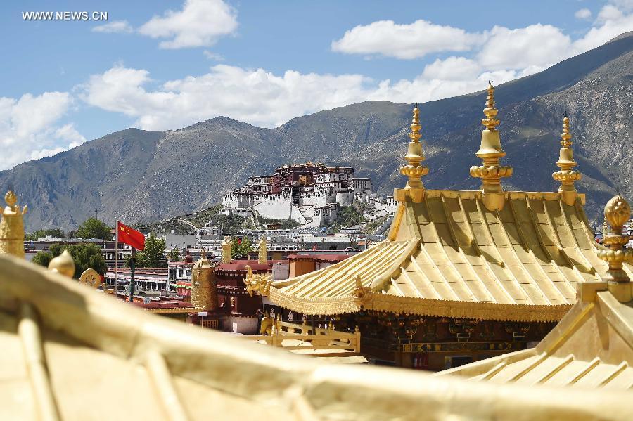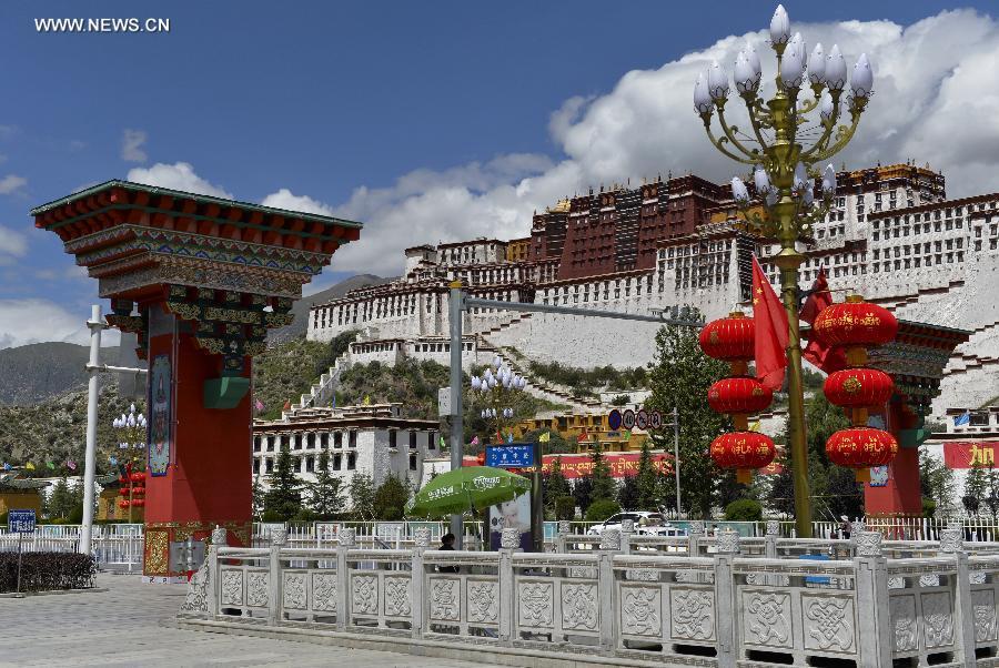 The Potala Palace is seen in downtown Lhasa, capital of southwest China's Tibet Autonomous Region, Sept 7, 2015. Festivities marking the 50th anniversary of the region's founding will be held on Sept 8, 2015 in Lhasa. (Photo: Xinhua/Liu Dongjun)