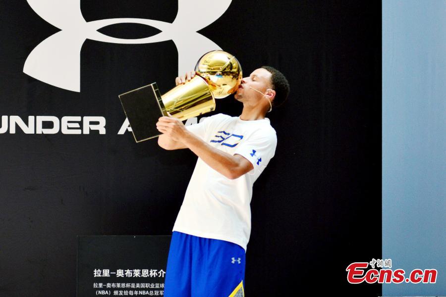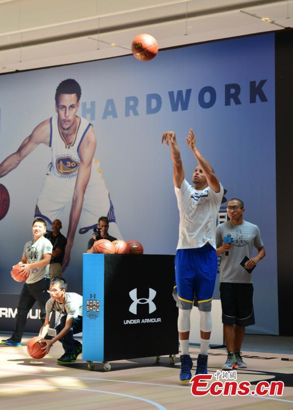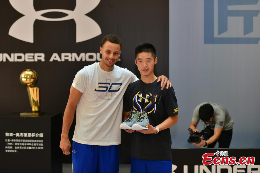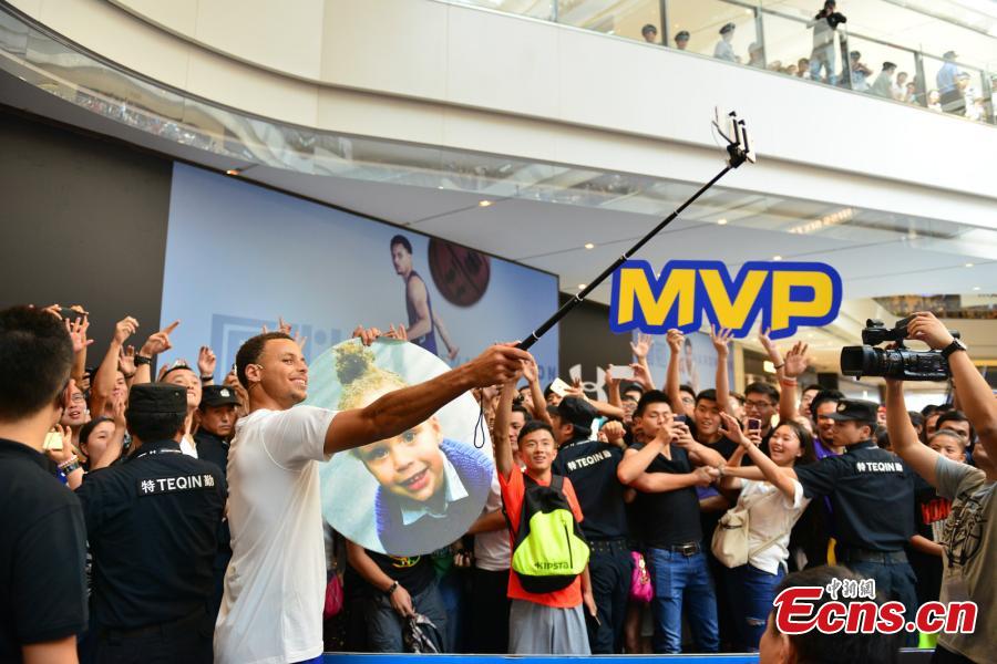 NBA MVP Stephen Curry takes a selfie with fans in the Chongqing leg of his three-day tour of China on September 7, 2015. As part of Under Armour's Road Show branding campaign in Asia, Curry will visit Shanghai on Tuesday. (Photo: China News Service/ Zhong Xin)