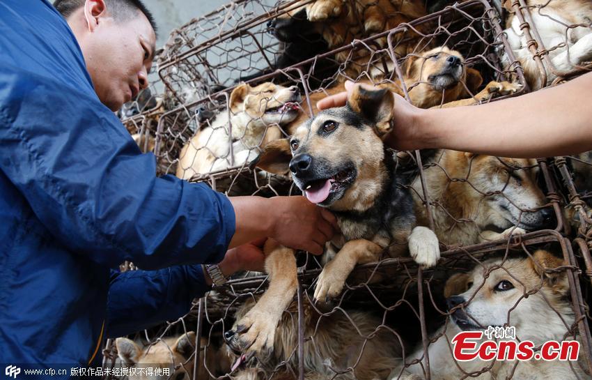 Woman hurts herself to prevent volunteers from saving dogs(1/4)