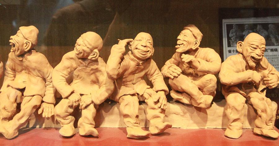 The first time when one sees Yue Yunsheng's creations, one can't help but be impressed by the vivid and lively clay figurines. In his artwork series Chinese New Year, he even puts himself in the figurines and creates an image of a little boy preparing for Chinese New Year with his family, in a scene from his childhood memories. He also created other well-known series, like Refugee, 36 Laughs, and Ugly Face. The Ugly Face series has more than 3,000 ugly faces with different facial impressions and is very popular with visitors coming to his workshop.