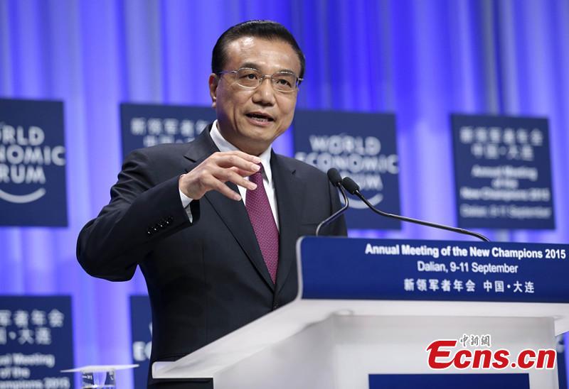 Chinese Premier Li Keqiang will deliver a keynote speech at the opening ceremony of the 2015 New Leaders Meeting of the World Economic Forum (WEF) in Dalian, Liaoning Province, Sept. 10, 2015. The three-day meeting will last from Sept. 9 to 11. (CNS photo/Liuzhen)