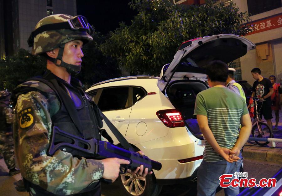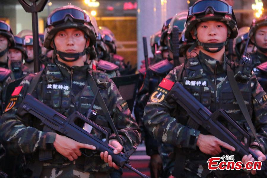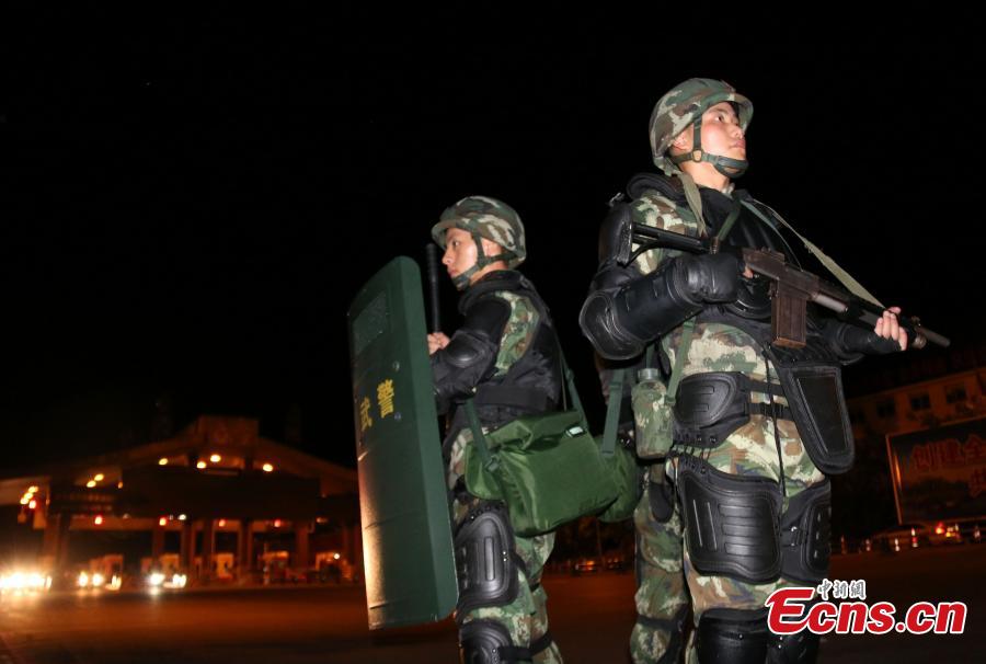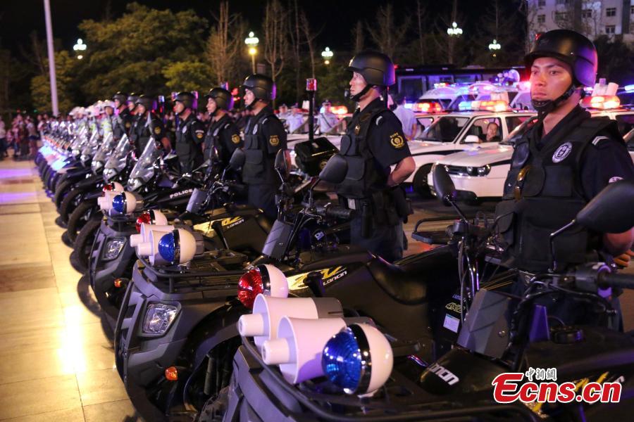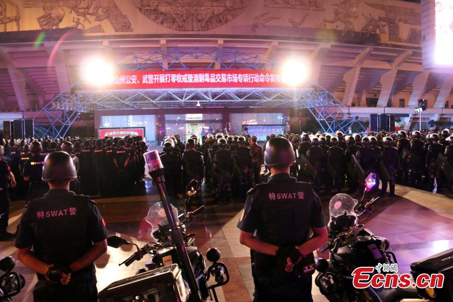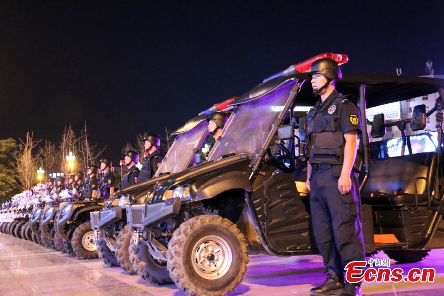 Police officers are geared up for an anti-drug campaign in Liangshan prefecture of Southwest China's Sichuan Province on September 10, 2015. Over 600 police officers involved in the campaign to seek and capture drug dealers and addicts across the region. (Photo: China News Service/ Li Jieyi)
