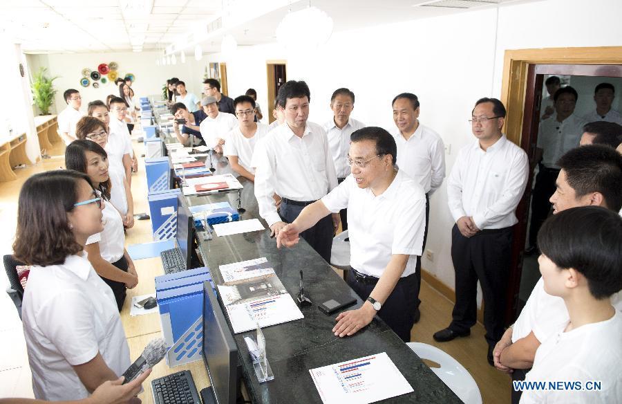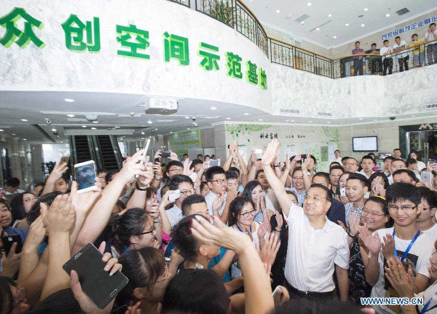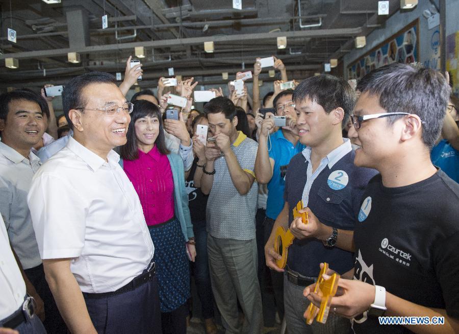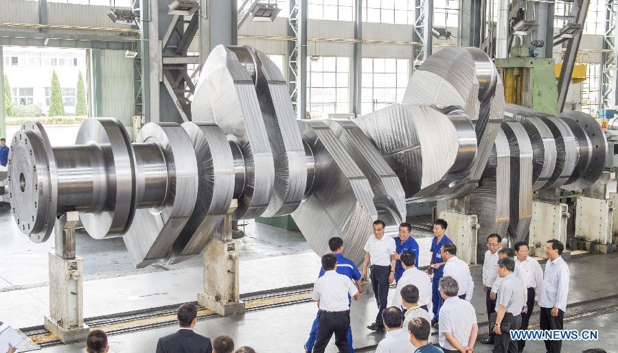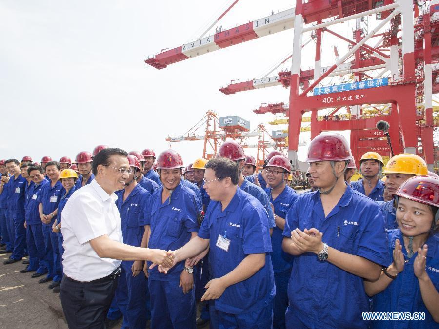 Chinese Premier Li Keqiang visits workers on a coastal assembly area of Dalian Shipbuilding Industry Offshore Co., Ltd. of Dalian, northeast China's Liaoning Province, Sept. 9, 2015. Li had an inspection tour in Dalian on industrial upgrade as well as mass entrepreneurship and innovation during his stay for the Summer Davos forum here. (Photo: Xinhua/Wang Ye)