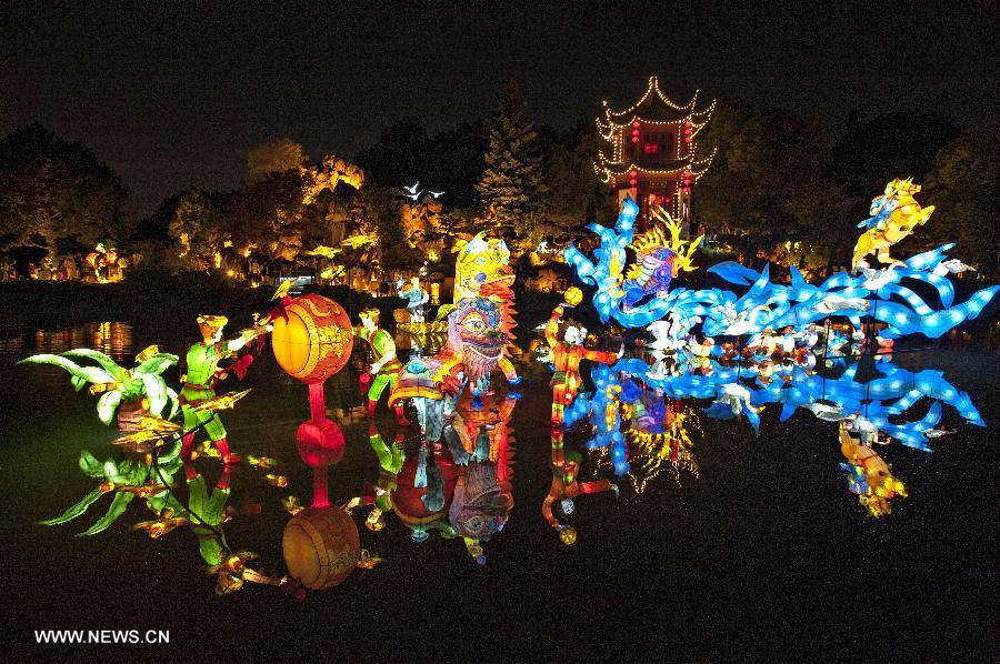 Chinese lanterns are seen in Montreal Botanical Gardens' Chinese Garden in Canada, Sept. 12, 2015. Every year Chinese lanterns bring the Montreal Botanical Gardens' Chinese Garden to life at night. About 900 lanterns will light up the Chinese Gardens from Sept. 4th until Nov. 1st and will attract thousands of visitors. (Photo: Xinhua/Andrew Soong)