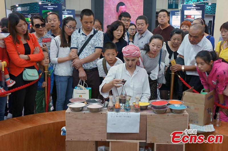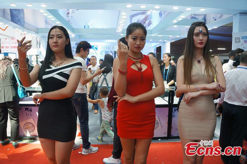 Models show the jewelry in the China-Arab States Expo 2015 in Yinchuan, capital of northwest China's Ningxia Hui Autonomous Region, Sept,12,2015. (CNS photo/Liuxu)