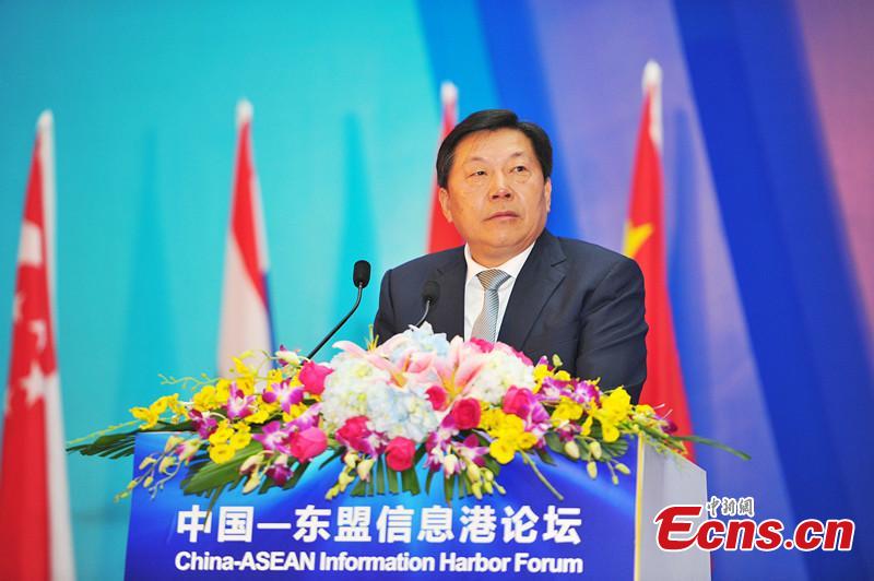 Lu Wei, minister of the State Council's Cyberspace Administration of China (CAC), delivers a keynote speech at the opening ceremony of China-ASEAN Information Harbor Forum in Nanning, capital city of south China's Guangxi Zhuang Autonomous Region, Sept. 13, 2015. The two-day forum seeks to strengthen cooperation between governments, companies, and scholars in the fields of e-commerce, Internet security and cultural industries. (CNS photo/Hu Yan)