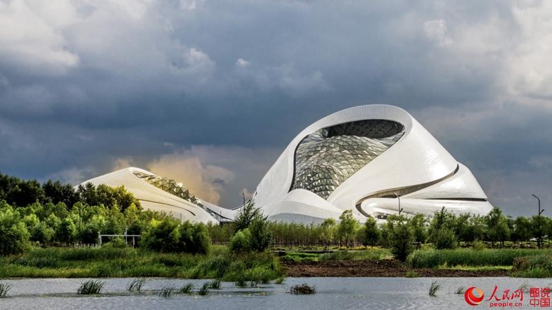 Instead of breaking up landscapes and changing the scenery, Harbin Grand Theater is incorporated into the surrounding landscape as naturally as possible. The center, which is being built on an island in northeastern China's Heilongjiang province, takes full advantage of its surrounding area. (Photo/Chinapic)
