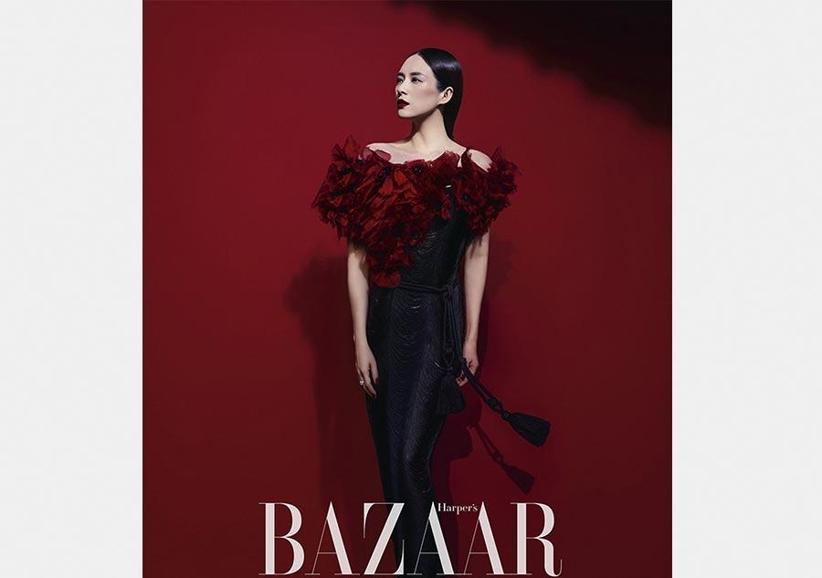 Chinese actress Zhang Ziyi poses during a photo shoot for Harper's Bazaar magazine. (Photo/Xinhua)