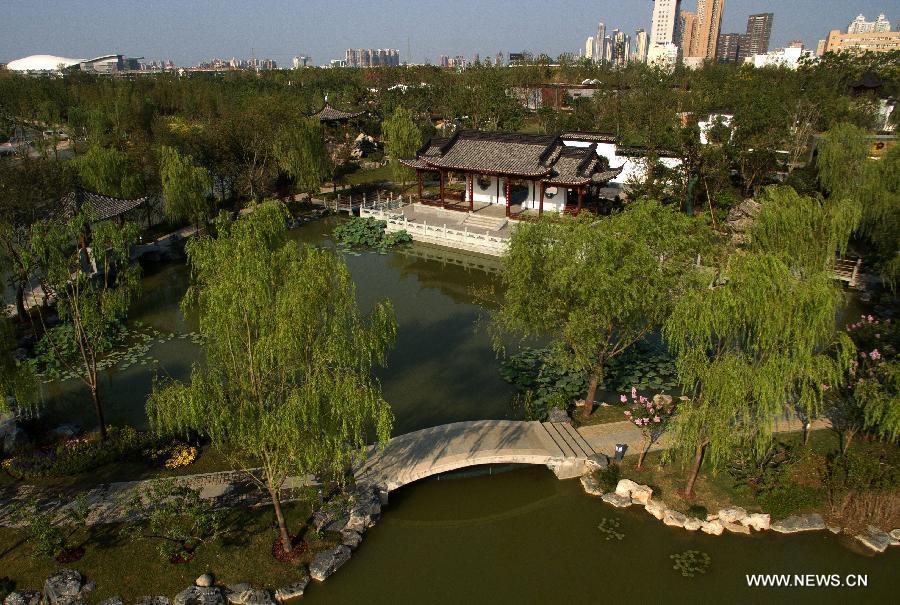 Photo taken on Sept. 15, 2015 shows the scenery of the International Garden Expo Park in Wuhan, capital of central China's Hubei Province. The 10th China International Garden Expo would kick off on Sept. 25 here. (Photo: Xinhua/Cheng Min)