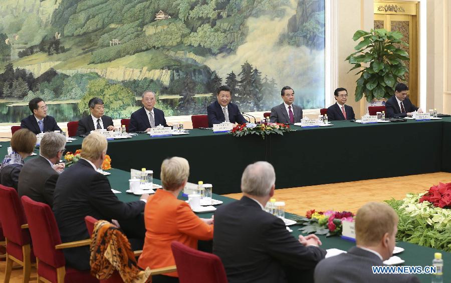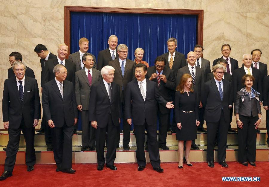 Chinese President Xi Jinping (C, front) meets with U.S. delegates attending the 7th China-U.S. business leaders' and former senior officials' dialogue at the Great Hall of the People in Beijing, capital of China, Sept. 17, 2015. (Photo: Xinhua/Huang Jingwen)