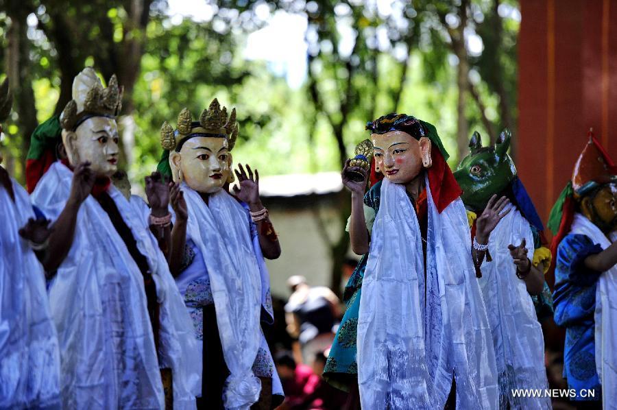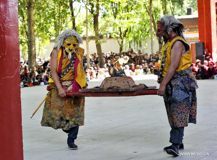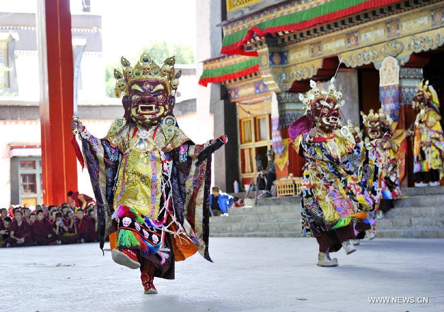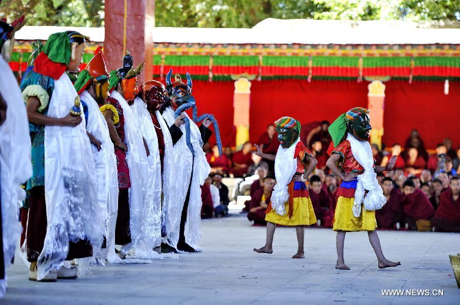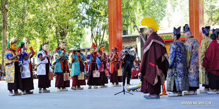 Monks attend a religious ceremony at the Tashilunpo Monastery in Xigaze, southwest China's Tibet Autonomous Region, Sept. 17, 2015. Summer religious ceremonies were held at the monastery from Sept. 16 to 18. (Photo: Xinhua/Zhang Rufeng)