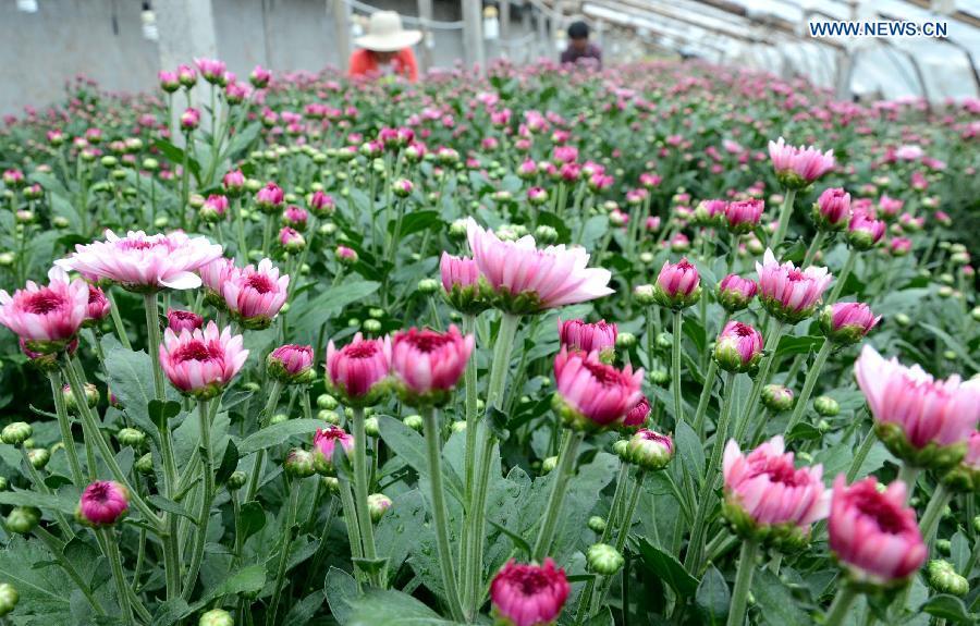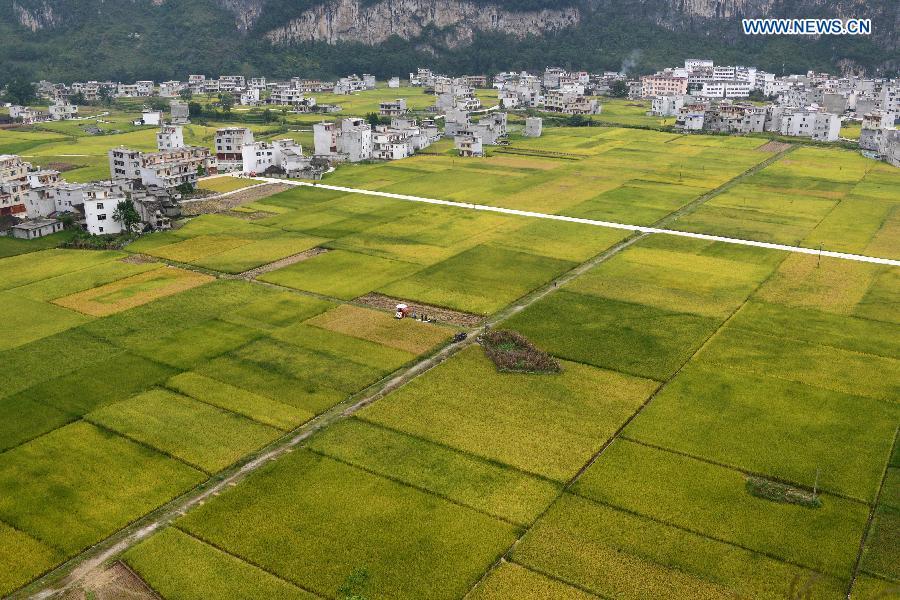 A worker dries red pepper in a yard in Jixian County, north China's Tianjin Municipality, Sept. 13, 2015. The harvest season is colored by ripe crops. (Xinhua/Yang Yushan)