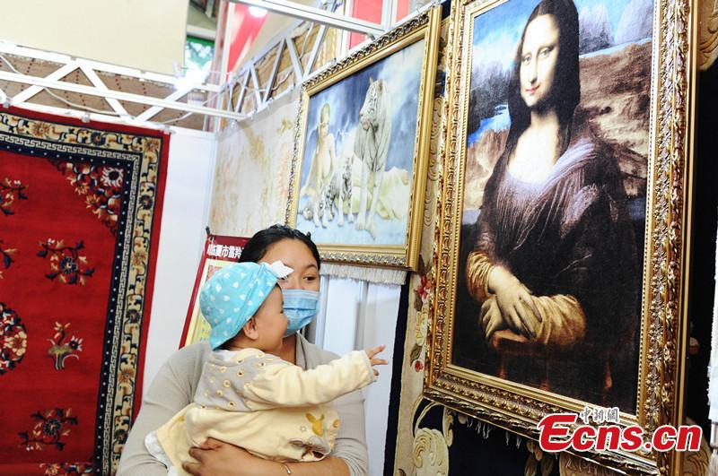 Sept. 19th, Linxia, a hand made wool Mona Lisa appears at 2015 International Muslim goods exhibition in Gansu Province. (CNS photo/Yang Yanmin)