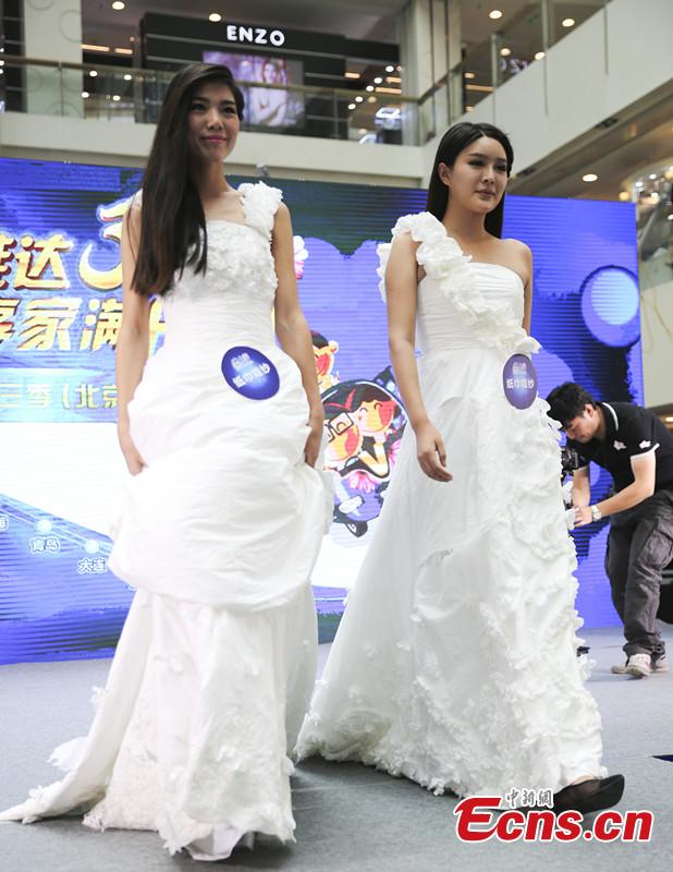 Sept. 20th, Beijing, Models are showing wedding dress which made of Tissue papers. (CNS photo/Zhao Jun)