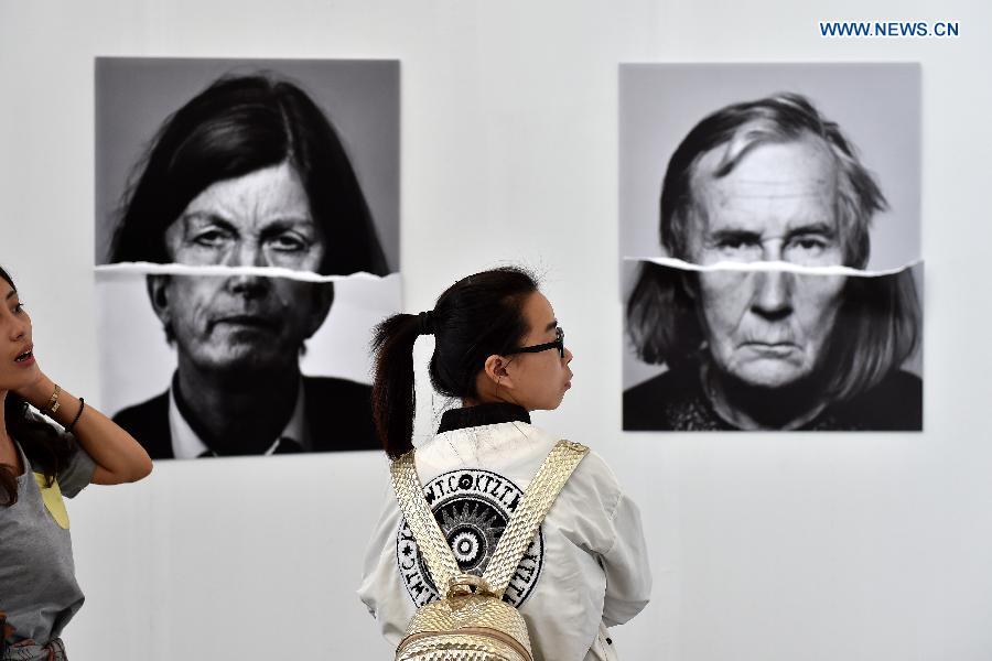 A visitor views photos at the Pingyao International Photography Festival (PIP) in Pingyao County, north China's Shanxi Province, Sept. 20, 2015. The 2015 PIP kicked off in Pingyao on Sept. 19, showing some 17,827 photos by over 2,100 photographers around the world. (Photo: Xinhua/Zhan Yan)