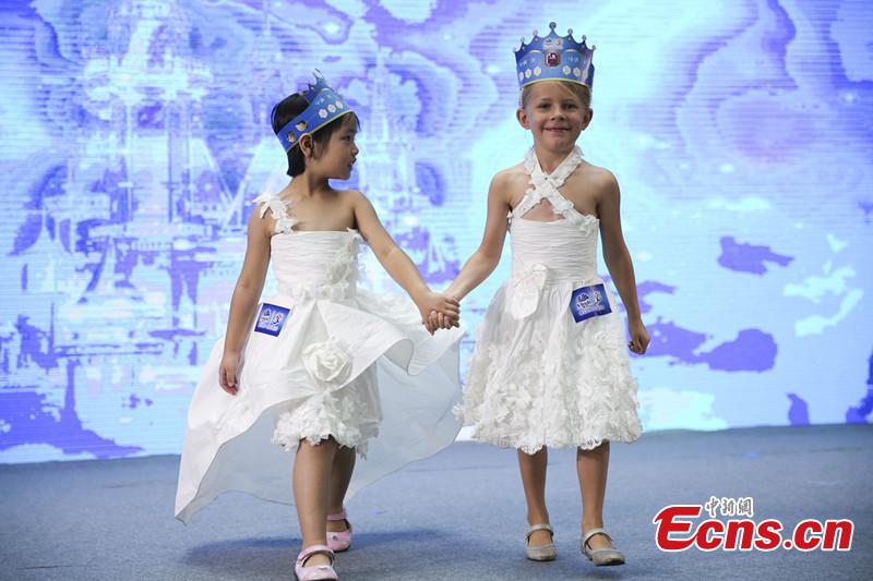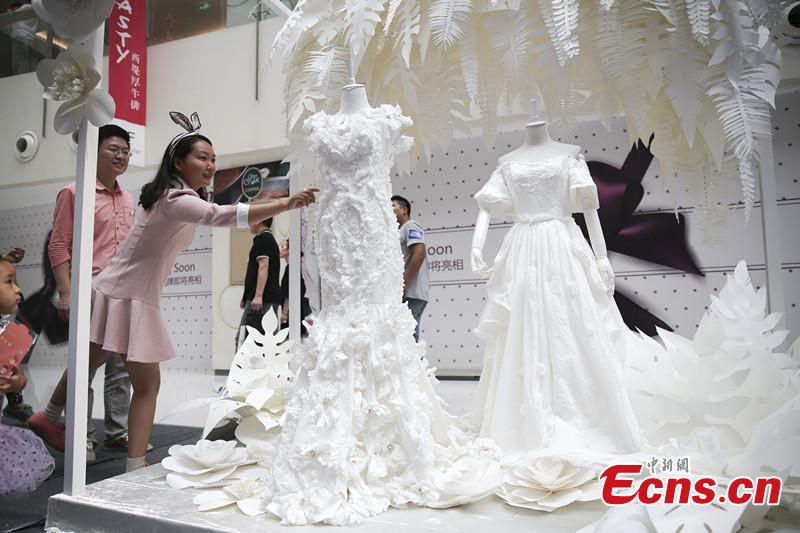 A tissue wedding dress show is held in Beijing on Sept. 20, 2015. The dresses are all made from tissues provided by Chinese tissue paper maker Vinda. (CNS photo/Zhao Jun)