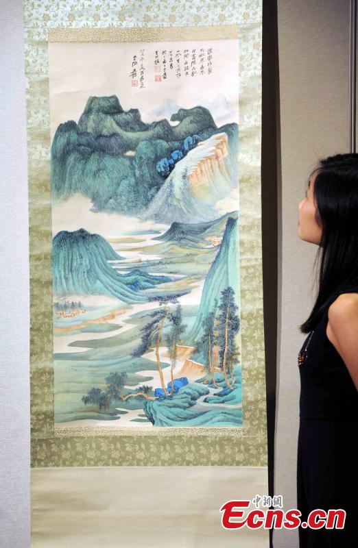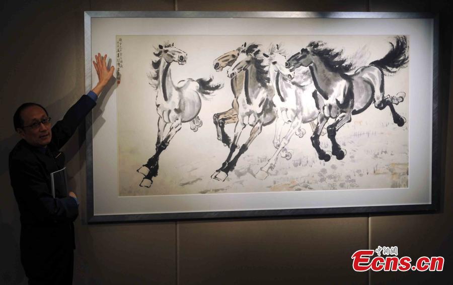 A painting of Xu Beihong is displayed in Hong Kong on September 23, 2015. Sotheby’s Hong Kong will hold an exhibition entitled “Chinese Paintings & Calligraphy from 20th Century Masters: The Goldbell Collection” in October. It will feature more than ten artists including Zhang Daqian, Xu Beihong, Qi Baishi, Lin Fengmian, and Pan Tianshou. (Photo: China News Service/Tan Daming)