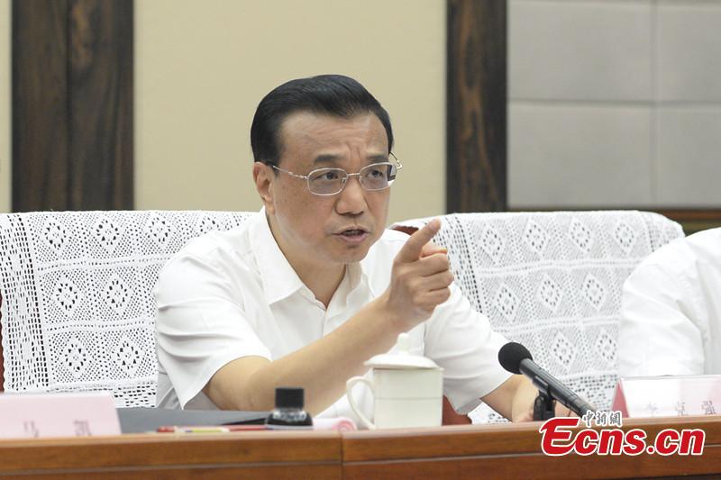 Chinese Premier Li Keqiang presides over a meeting on the investigation of the blasts that occurred in north China's Tianjin last month, in Beijing, capital of China, Sept. 22, 2015. (CNS photo/Liao Pan)