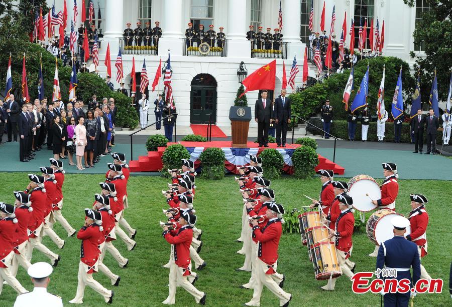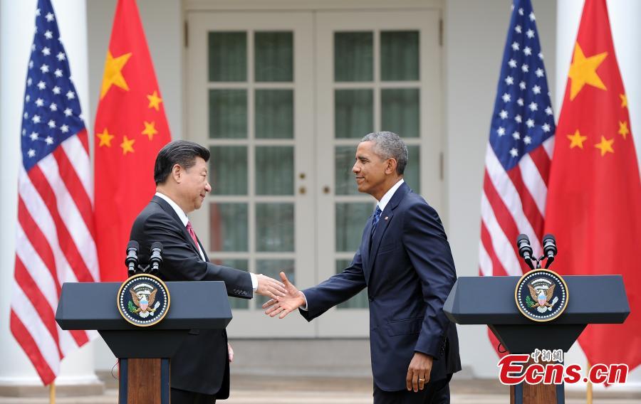Chinese President Xi Jinping (L) and U.S. President Barack Obama meet with the press after their talks in Washington D.C., the United States, Sept. 25, 2015. (CNS photo/Mao Jianjun)