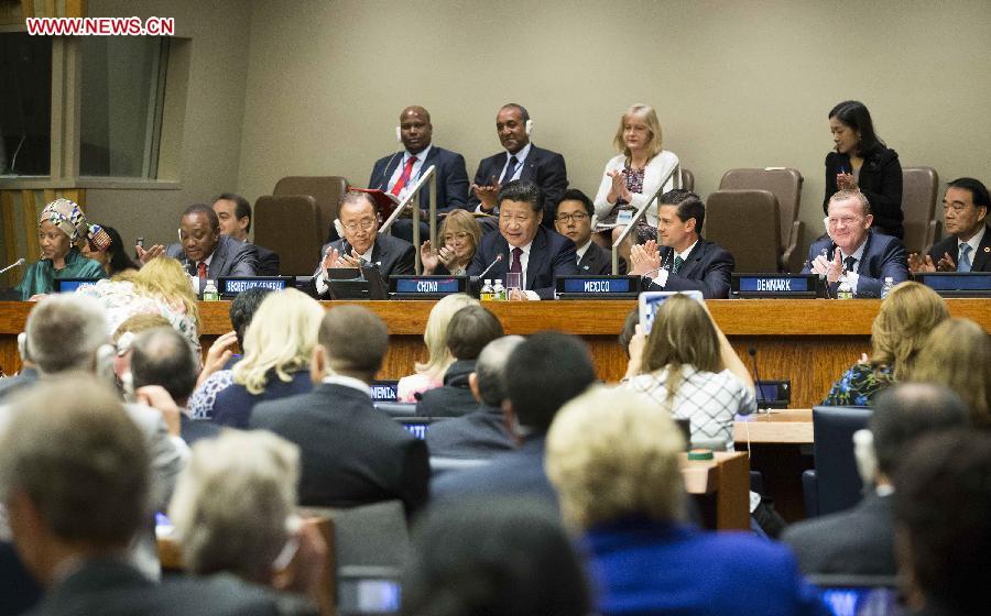 Chinese President Xi Jinping delivers a speech at the Global Leaders' Meeting on Gender Equality and Women's Empowerment at the United Nations headquarters in New York, the United States, Sept. 27, 2015. (Photo: Xinhua/Huang Jingwen)