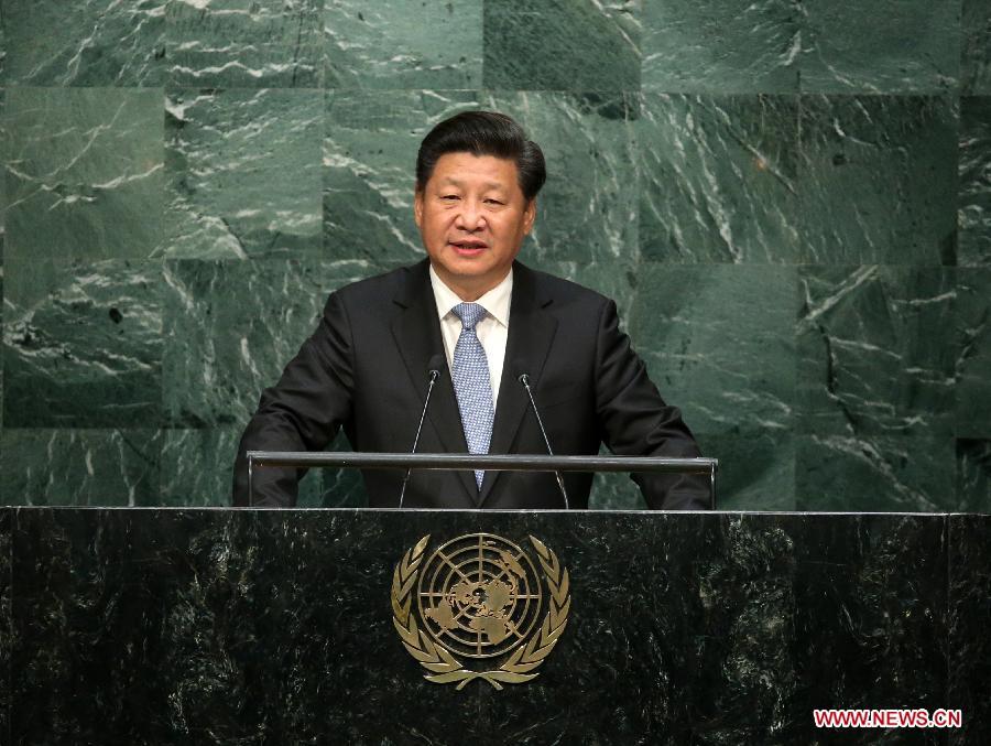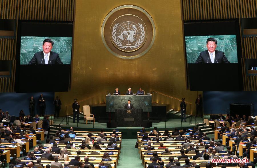 Chinese President Xi Jinping addresses the annual high-level general debate of the 70th session of the United Nations General Assembly at the UN headquarters in New York, the United States, Sept. 28, 2015. (Photo: Xinhua/Pang Xinglei)