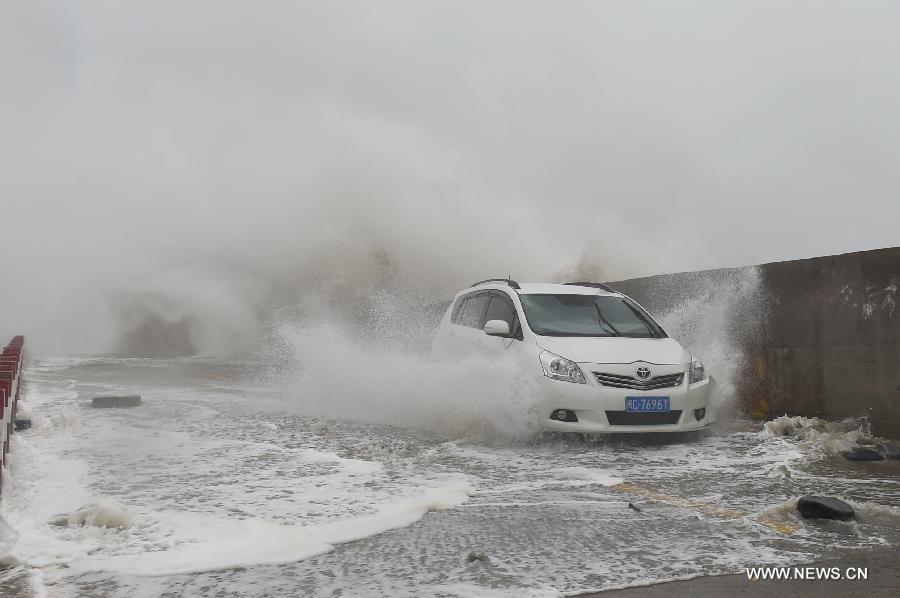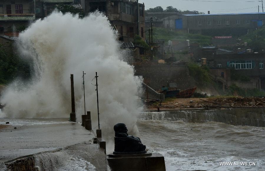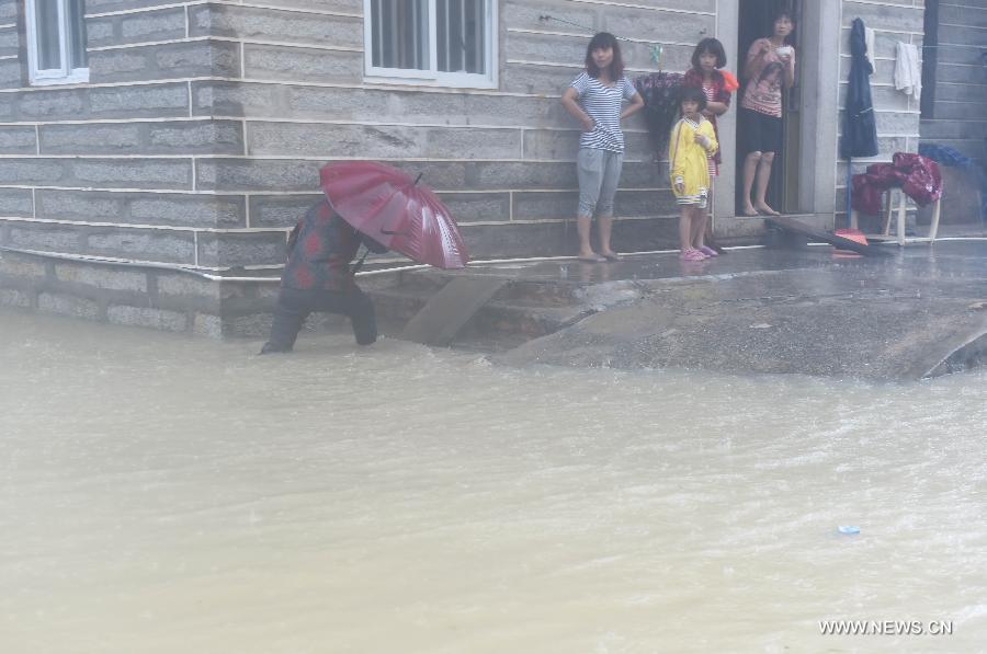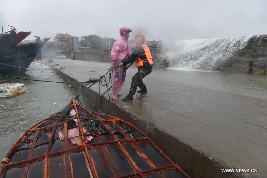 Frontier soldiers patrol at Jiaonan Village of Tailu Town in Lianjiang County, southeast China's Fujian Province, Sept. 29, 2015. Typhoon Dujuan, the 21st typhoon of this year, made landfall in Fujian on Tuesday morning. The storm hit the coastal city of Putian at around 8:50 a.m., packing winds of up to 33 meters per second, said the Fujian Meteorological Service. (Photo: Xinhua/Zhang Guojun)